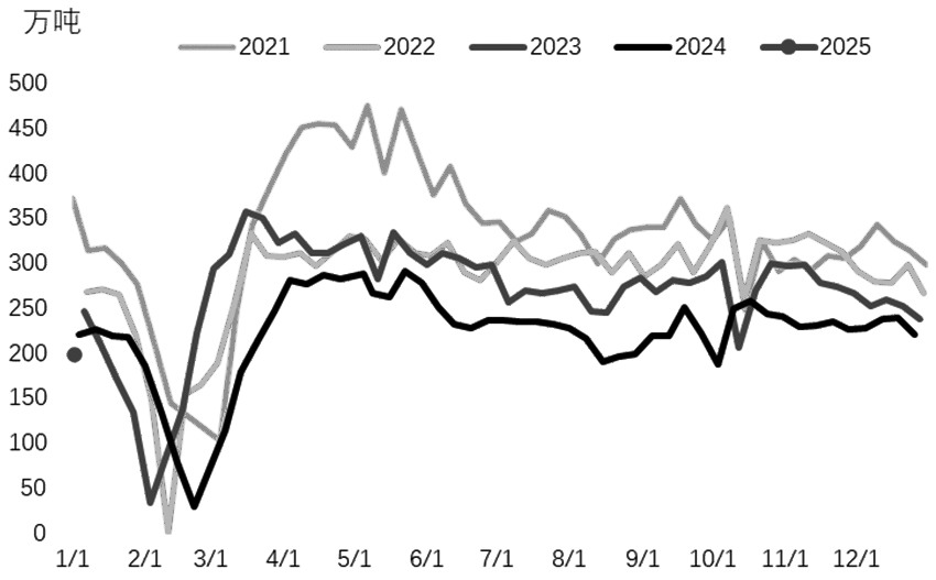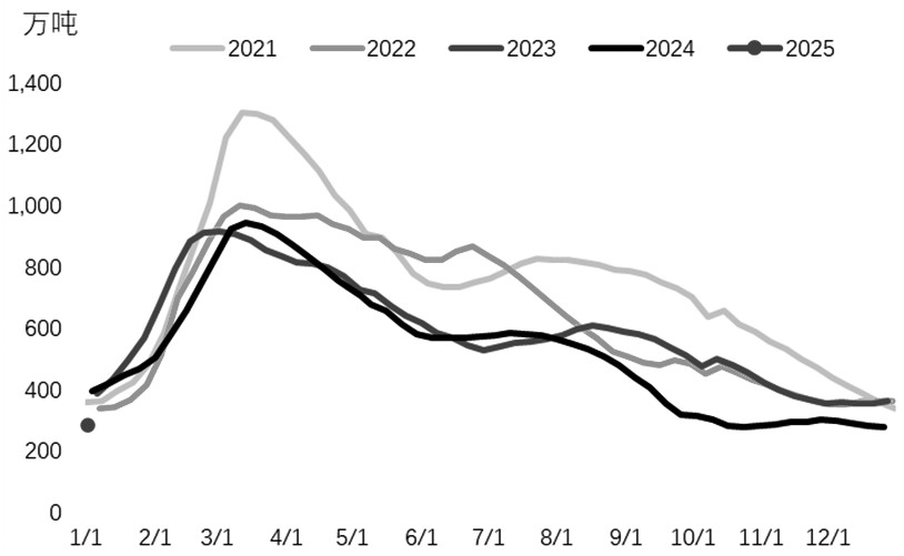 图为螺纹钢总库存季节性走势