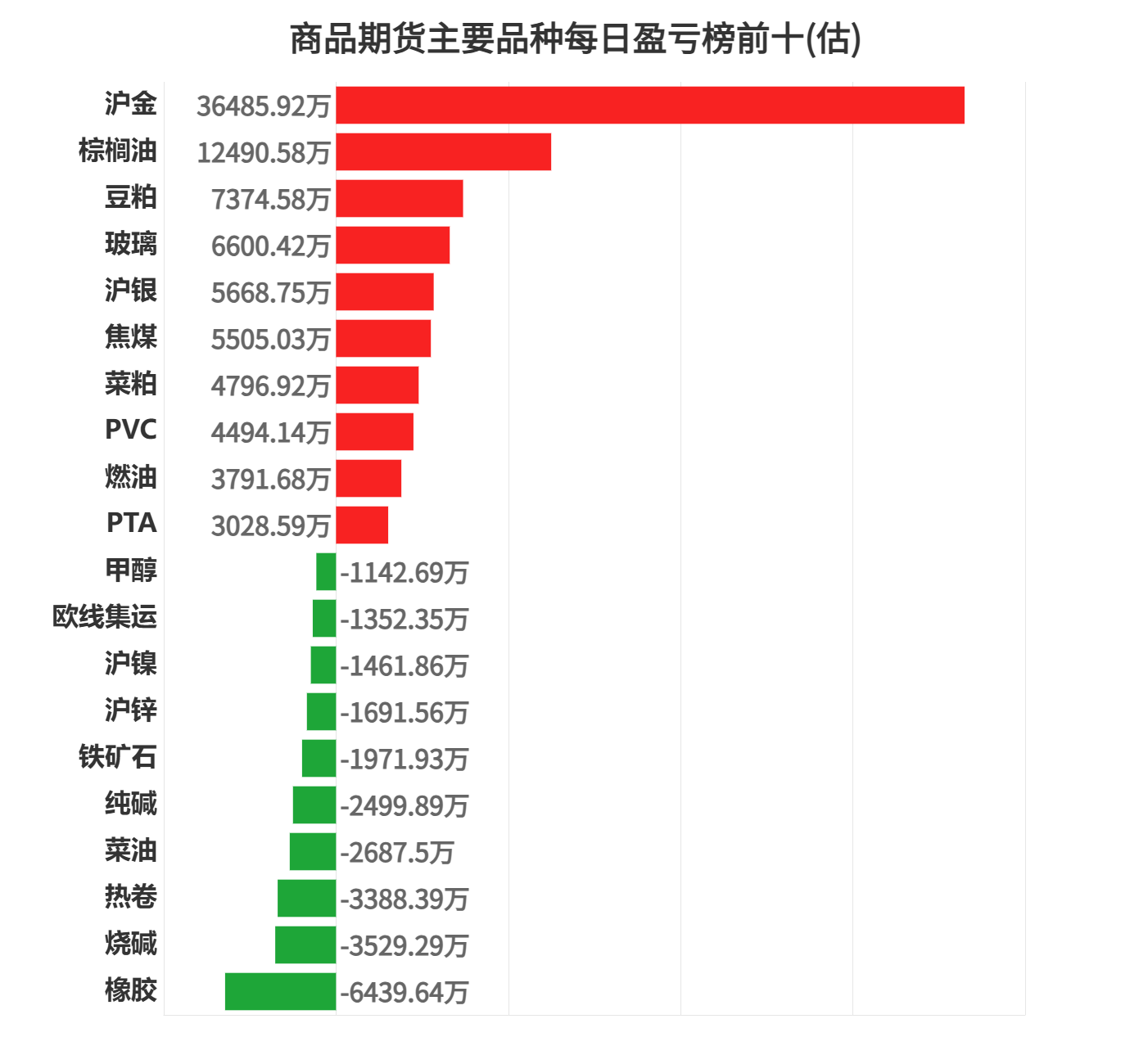 每日期货龙虎榜,带你深度了解市场。 市场一览:周三商品期货综合指数上涨0.04%,日内资金净流入3.46亿元。 市场成交量为2209.26万手,成交额为1.50万亿元。 持仓量为3316.02万手,较前一交易日增加31.99万手。 市场成交量前十和持仓量前十如下图所示: ![]() ![]() ![]() 品种盈亏榜:今日商品期货上榜机构席位中沪金盈利第一,为36485.92万元。 橡胶亏损第一,为6439.64万元。 ![]() 注:盈亏数据为对应龙虎榜持仓的估算数据。 您可通过点击东方财富期货APP资讯页面“龙虎榜”及东方财富期货PC端左侧“龙虎榜”查看各类席位持仓及盈亏榜单信息。点此查看>> ![]() ![]() 本信息来源于东方财富Choice数据,相关数据仅供参考,若数据有误,以交易所发布数据为准,不构成投资建议。 (文章来源:东方财富研究中心) (责任编辑:迷你学人) |