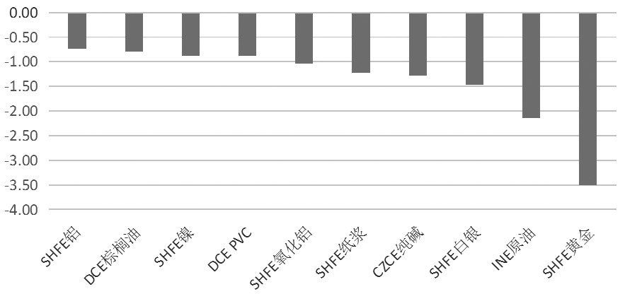 图为商品期货资金流出前十名(亿元)