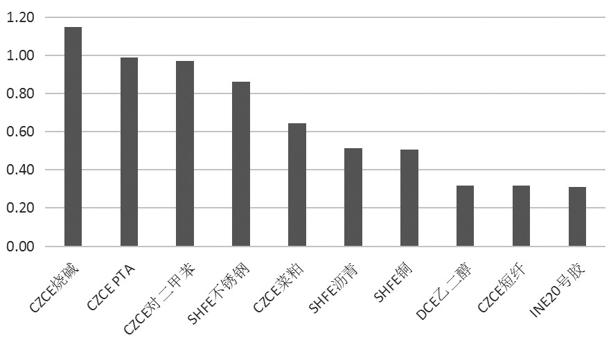 图为商品期货资金流入前十名(亿元)