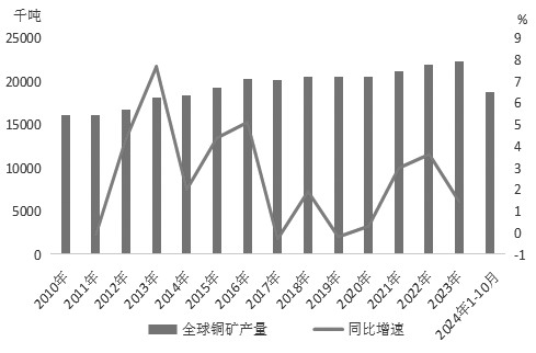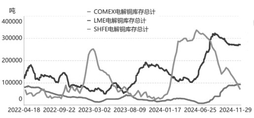 在不确定性中寻找确定性 在目前内外经济形势及政策影响下,2025年国内铜供过于求局面或持续,但在海外消费回暖预期下,铜价整体将呈先抑后扬态势,且外盘走势要相对强于内盘。 海外宏观面不确定性较大 2024年铜价波动幅度较大。具体来看,1—2月,国内铜库存季节性累积,国内央行降低存贷款利率,而美联储多位官员给降息泼冷水,令铜价承压。3月初至5月中旬,第一量子矿业旗下的Cobre铜矿停产引发矿端供应短缺,铜价大幅走高,另外中美制造业PMI数据向好,亦助推铜价上行。5月下旬至8月上旬,得益于冷料供应宽松,炼厂减产不及预期,叠加消费淡季影响,国内铜库存去化不畅,加上铜矿端供应紧缺局面出现好转迹象,铜价走势受到压制。8月中旬至9月,全球经济形势好转,9月美联储大幅降息50个基点开启宽松周期,国内9月亦降息、降准、降存量房贷利率等多举并发,提振市场情绪,国内铜库存快速去化,利好铜价走势。10月至12月中旬,国内表示实施更加积极的财政政策和适度宽松的货币政策,但美国当选总统特朗普表示,将对进口自中国的所有商品加征10%的关税,高位美元持续对铜价施压。 随着美国通胀持续降温,2024年9月美联储开启宽松周期,年内共降息100个基点,而美国当选总统特朗普的对内全面减税、对外加征关税政策令美国二次通胀风险增加。2024年美联储年内最后一次议息会议虽如期降息25个基点,但暗示放缓降息步伐,点阵图暗示2025年美联储仅有两次降息,而2024年9月点阵图预期为4次,美联储主席鲍威尔亦表示,“接近或已到达”放缓、暂停降息的节点,未来降息将需要通胀取得新的进展。2025年需关注特朗普竞选政策的落地情况,或对美联储降息节奏有较大影响。 2024年国内发布了一系列逆周期政策。2025年国内政策仍有放松空间,货币政策上可表现为降准、降息、推出更多创新型货币政策工具,财政政策上表现为提高财政赤字率、增发超长期特别国债和地方政府专项债券等。 ICSG数据显示,2024年1—10月全球铜矿产量累计为1877万金属吨,较2023年同期增加43.84万金属吨,或增长2.39%。 从全球主要铜矿企发布的2024年前三季度铜产量数据来看,减量主要来自第一量子和智利铜业,增量主要来自泰克资源、必和必拓和南方铜业等。前三季度,第一量子旗下的CobrePanama铜矿迟迟未复产,或推迟至2025年,拖累其产量,而智利铜业产量继续受矿龄老化、采掘成本上升等问题限制。前三季度,泰克资源铜产量大增,主要得益于其在智利的QuebradaBlancaII矿山的超预期表现,必和必拓的Escondida铜矿开采品位提高为其贡献增量,南方铜业主要得益于公司所有露天采矿场矿石品位和回收率提高带来的产量提升。 从后续铜矿增量来看,预计2025年全球铜矿增量在64万吨左右,其中增量较大的有第一量子的CobrePanama铜矿、紫金矿业的朱诺铜矿、力拓旗下的OyuTolgoi(OT)、铜陵有色的Mirador铜矿、泰克资源的QuebradaBlancaII(QB2)以及紫金矿业和艾芬豪矿业共有的Kamoa-Kakula(KK)等项目。 从资本开支来看,近几年全球主要铜企资本开支虽有所增加,但并不高,资本开支与铜矿产量释放时间差3—5年,对应到后续几年全球铜矿增量将相对有限,另外一些大型铜矿山矿石品位下降也加大了企业的开采成本。 国内方面,2024年1—10月我国铜精矿产量累计为138万金属吨,累计同比增长2.54%。进口方面,2024年1—11月我国铜精矿累计进口量为2564万实物吨,累计同比增长2.13%。因我国铜矿资源有限,随着国内冶炼产能的扩张,国内对进口矿的需求逐渐增加,进口依存度已达到80%以上。 2024年1—10月我国废铜产量累计为95.14万金属吨,累计同比减少7.59%,2024年下半年受反向开票和公平竞争审查条例影响,废铜供应减少。在《2024—2025年节能降碳行动方案》下,我国再生金属产业将快速发展,方案要求,到2025年年底再生金属供应占比达到24%以上,但亦面临各种政策性限制。 进口方面,2024年1—11月我国废铜进口量累计为203.25万实物吨,累计同比增长13.76%。 粗铜方面,2024年1—10月我国粗铜产量累计为893.66万吨,累计同比增长6.77%。其中矿产粗铜量742.39万吨,累计同比增长4.89%,废铜产粗铜量151.27万吨,累计同比增长17.06%。进口方面,2024年1—11月我国累计进口粗铜81.58万吨,累计同比减少14.23%。整体来看,去年年内国内粗铜供应增量明显,不过进口粗铜受矿紧影响进口量偏低,国内粗铜供应处于偏紧局面。 2025年国内外仍有大量铜粗炼新增产能释放,预计增量为182万吨,不过矿端偏紧背景下,新增粗炼产能兑现量或不及预期,2026年后增量将放缓。 精炼铜产能仍待释放 据ICSG数据,2024年1—10月全球精炼铜产量累计为2288万吨,累计同比增长2.21%。2024年1—10月我国精炼铜产量累计为996万吨,累计同比增长5.06%,除去国内产量,可知海外精炼铜产量为1292万吨,累计同比增长0.11%。2024年矿端供应虽然偏紧,但在长单有利润以及副产品黄金、硫酸等高价抵补下,国内精炼铜产量仍保持高位。不过,2025年铜精矿长单TC/RC降至21.25美元/吨和2.125美分/磅,远低于2024年的80美元/吨和80美分/磅,国内铜冶炼厂面临减产风险。