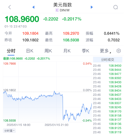 高盛资产管理公司固定收益客户投资组合管理负责人蒂娜·阿达提亚在报告中表示:“CPI数据强化了美联储尚未结束降息周期的论点。”然而,她指出,强劲的就业市场意味着“美联储有耐心的空间”,进一步降息需要更多的良好通胀数据支撑。 Harris Financial Group的杰米·考克斯表示:“核心通胀没有加速增长,这才是关键,市场可能因为担心通胀再次失控而惊慌失措,但数据并不支持这一结论。” 摩根士丹利财富管理的艾伦·曾特纳指出,周三的CPI数据不会改变本月晚些时候暂停加息的预期,但应该会减少关于美联储可能加息的讨论。从市场的初步反应来看,经历了几个月粘性的通胀数据后,投资者似乎感到了一丝宽慰。 Key Wealth的拉吉夫·夏尔马表示,这些数据大致符合预期,为市场带来了喘息之机。然而,仅仅符合预期的通胀数据不足以让美联储忽视强劲的就业市场,因此市场不应过早开始预期2025年会有更多的降息。 交易员预期美联储将进一步放松政策,预计美联储会在7月底前降息,之前预计为9月。而利率期货交易者押注美联储6月降息,并预计到2025年底有约50%的可能性出现第二次降息。 全球大涨 美国12月CPI数据公布后,全球市场开启暴涨模式,道琼斯指数一度暴涨700点,纳斯达克指数大涨超2%,标普500指数涨超1.6%。 欧洲股市集体跳涨。 ![]() 美元指数跳水。 ![]() 中国资产方面,中概股指数涨超1%,富时中国A50期货指数涨超0.2%。 ![]() ![]() (文章来源:中国基金报) (责任编辑:迷你学人) |