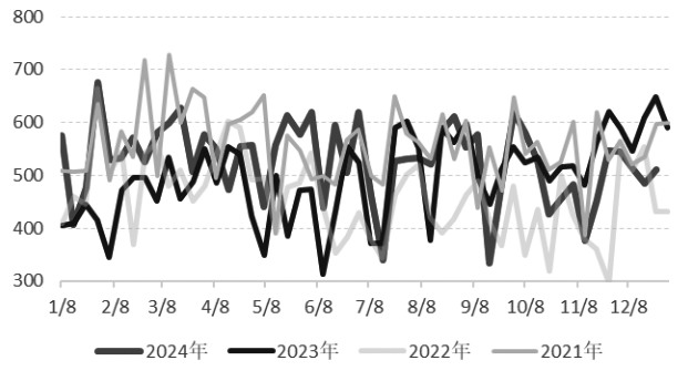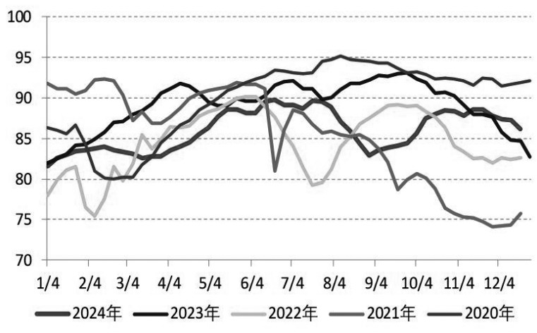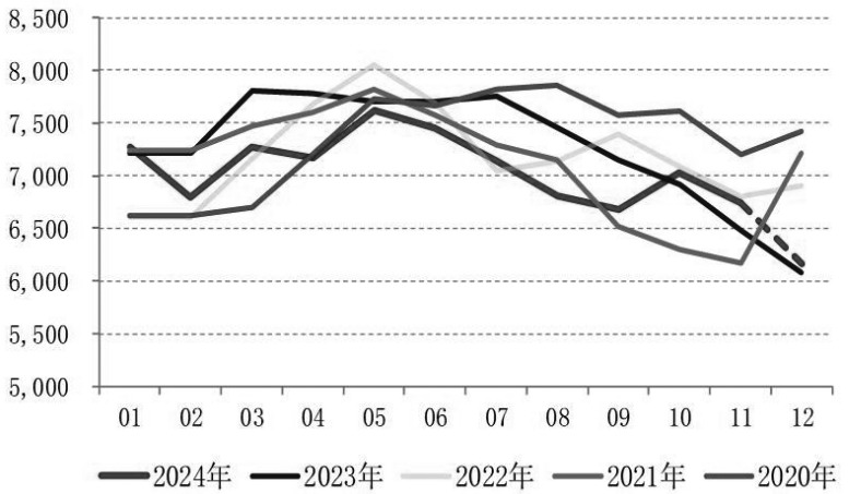 图为中国生铁产量(单位:万吨) 受经营环境以及行业政策变化的双重影响,钢铁冶炼行业的自律性约束机制正在逐步增强。市场的“无形之手”逐步成为最好的指挥棒。在亏损严重的阶段,钢厂自发性减产和控产的意愿显著增强。虽然目前钢铁冶炼产能过剩压力仍然较大,但是在自律性减产和控产意识显著提升的环境下,钢厂产能还是受到了较大程度的约束。根据上海钢联数据,全国247钢厂2024年产能利用率均值为86%,2023年为89.1%。随着产能利用率持续下降,我国生铁和粗钢产量也开始下降。国家统计局数据显示,2024年1—11月份我国生铁产量为7.83亿吨,同比下降2754万吨,降幅达3.4%。 过去5年,政策和利润是影响生铁产量的关键因素。国家统计局公布的数据显示,2020年我国生铁产量到达8.88亿吨的峰值;2021年受“能耗双控”政策影响,生铁产量降至8.69亿吨,同比下降1896万吨;2022年生铁产量为8.64亿吨;2023年生铁产量为8.71亿吨。 由此可见,在政策调控相对宽松以及钢厂生产经营压力相对较小的两年中,生铁产量基本保持稳定,产量变化幅度在500万~1000万吨之间。2024年是过去5年中钢厂生产经营压力最大的一年,在没有政策调控的环境下,生铁产量预计将降至8.4亿吨,成为最近5年中降幅最大的一年。