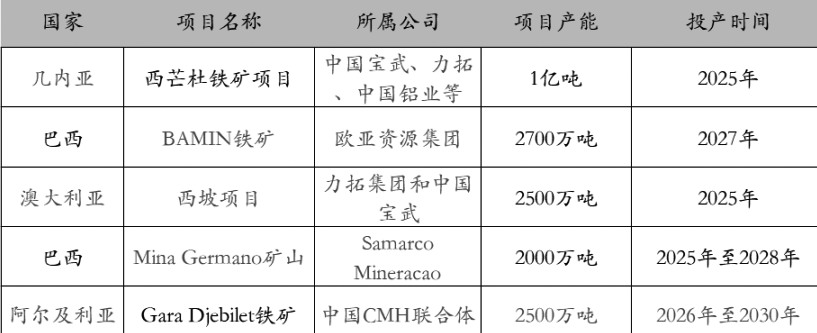 图为巴西铁矿石出口量(单位:万吨) 上述判断也可从澳洲和巴西近几年铁矿石的出口情况得到验证。根据世界钢铁协会的统计,澳大利亚在2019年受“飓风事件”影响之后,铁矿石出口量逐步回升,近两年保持年均1000万吨左右的增长水平,2023年出口量达到历史最高点的9亿吨左右。巴西铁矿石出口量在2019年淡水河谷“尾矿坝”事故之后,也呈现逐年回升的状态,2023年达到3.79亿吨的高位,2024年前11个月出口量达到3.58亿吨,较上年同期增长1830万吨,近两年出口量年均增长2500万吨。 非主流产区产能增长潜力较大 当前,除澳洲和巴西的四大矿山资本开支保持增长外,非洲的矿山资本开支也显著增长。目前由中国宝武和澳洲力拓等企业共同投资开发的几内亚西芒杜项目,被认为是未来5到10年全球铁矿石产能最大的增长来源之一。该项目储量预计达到24亿吨,铁品位达到65%。项目预计于2025年投产,设计年产能为1亿吨。