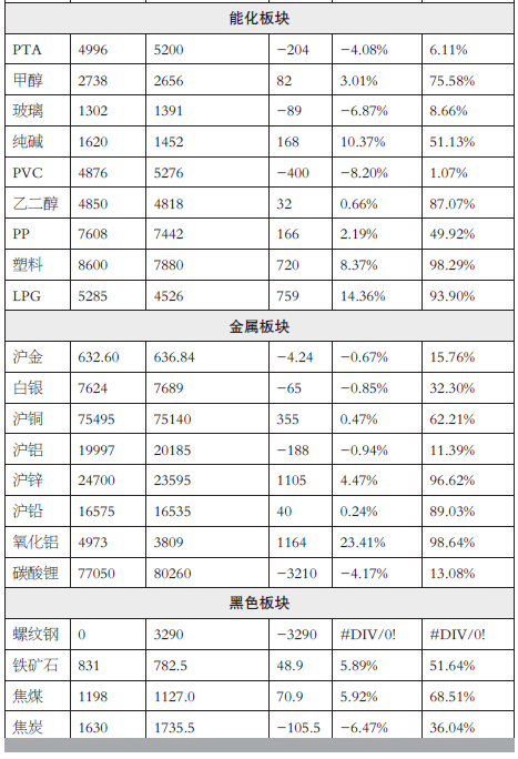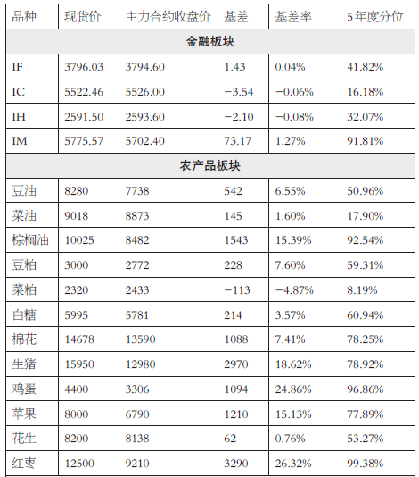 期货品种基差(1月15日) 迷你学人 01月16日 备注:1.生猪、鸡蛋、玻璃、铁矿石、焦煤已折合盘面相同单位价格;2.品种现货价采用交割基准地报价;3.基差=现货价格-期货价格;4.基差率=(现货价格-期货价格)/现货价格;5.基差监测为5年度分位,即当日基差在近5年的基差中的分布情况,若品种上市不足5年,则采用上市以来数据;6.若基差在统计区间上沿(85%以上),其大概率有缩窄可能,若基差在统计区间下沿(15%以下),其大概率有扩大可能。(福能期货 郑晓艳) (责任编辑:迷你学人)