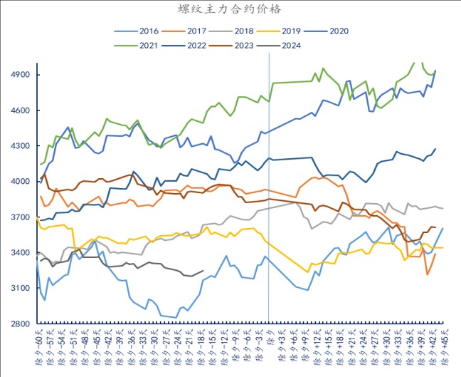 2.春节前后品种强弱变化 (1)卷螺价差淡季供应影响更大,趋势行情靠需求推动