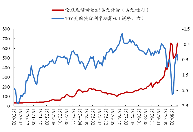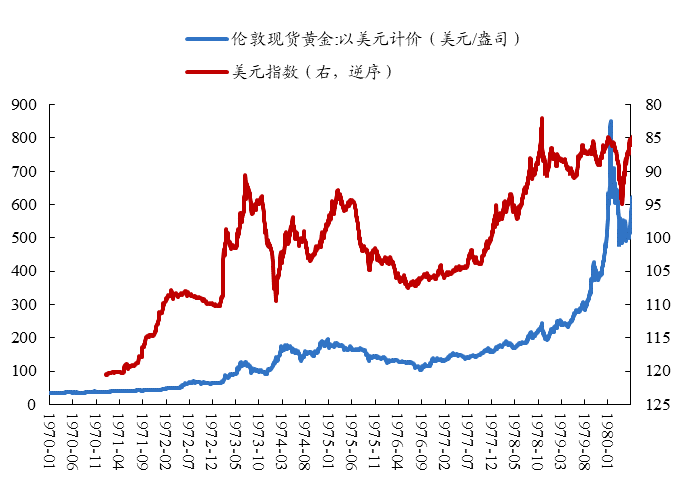 | 核心观点 黄金作为全球重要的硬通货,其具备商品、货币、避险三大属性;而各属性的需求变化又将不同程度影响黄金的最终表现。本文拟复盘1970年以来黄金的5轮牛市,以探索每轮牛市期间黄金上涨行情背后的重要逻辑与驱动因子。 复盘过去50年黄金三大属性驱动下的趋势性机会 黄金的货币属性决定其价格的长期中枢走势,并对应核心观测指标为“美国实际长端利率”。究其原因:(1)黄金对冲全球经济风险、抑制通胀及零息债券的信用优势凸显。事实上,美国实际长端利率(逆序)和黄金价格走势呈现高度正相关性,系数高达0.9;(2)避险属性持续期通常较短,难以影响金价长期中枢;(3)黄金商品属性影响减弱,投资、储备等需求明显上升,导致其定价的“锚”由美元指数转向实际利率。历史上美国实际利率下行驱动黄金价格上涨的阶段可归结为以下四种情况:(1)经济“滞胀”,通胀快速抬升,长端名义利率上涨“钝化”(美国70年代);(2)经济下行压力加大叠加货币紧缩,导致名义利率不升反跌(2018年);(3)经济衰退叠加宽货币,若货币见效通胀底部企稳,名义利率继续向下(2020年);(4)经济复苏初期叠加货币宽松,名义利率易跌难升,且通胀升温(2010年)。 双属性驱动或前、后脚开启,黄金配置机会凸显 展望2022H2:美国经济已现疲态,货币紧缩对美国长端名义利率的影响已经明显弱化,叠加就业市场活跃,薪资持续上涨等,将导致美债长端实际利率“易跌难涨”。考虑到后续一旦美国货币政策转向,美元指数也将大概率走贬,意味着黄金的商品属性需求亦将增强。未来美国实际利率的下行空间有多少呢?我们统计在历史上四次美债利差“倒挂”时,美国货币政策维持“收紧”及之后转向“宽松”的期间,实际利率下行的平均幅度分别为87bp和143bp.考虑到:(1)2022H2计算实际利率的通胀指标或仍将持续高企;(2)本轮美国经济“滞胀”在货币政策转向之前,保守估计实际利率约有100bp的下行空间,这与历史经验的调整幅度基本吻合。一旦美联储货币政策转向,实际利率的下行空间将有望进一步打开。以史为鉴,在美国经济下行期间,即便货币政策依旧趋紧,实际利率下行依然将带动黄金迎来上涨行情。 复盘过去50年黄金三大属性驱动下的趋势性机会 黄金作为全球重要的硬通货,其具备商品、货币、避险三大属性;而各属性的需求变化又将不同程度影响黄金的最终表现。本文拟复盘1970年以来黄金的5轮牛市,以探索每轮牛市期间黄金上涨行情背后的重要逻辑与驱动因子。 图1:1970年以来黄金的5轮牛市,包括两轮十年大牛市 ![]() 数据来源:Wind、开源证券研究所 1970年1月~1980年1月,黄金三大属性需求共振,推动其迎来非货币化后的第一轮牛市。黄金价格由35美元/盎司上涨至850美元/盎司左右,涨幅超23倍。期间,黄金价格的涨幅主要由两个阶段贡献: 第一阶段(1970年1月~1974年12月):一方面,黄金货币属性需求明显抬升。包括:(1)美国经济陷入“滞胀”时期,凯恩斯主义失灵,经济下行叠加通胀持续高企带动实际利率下行,较大程度提振了黄金的投资需求。(2)与此同时,特里芬两难使得美元与黄金的固定比价难以维持,1973年布雷顿森林体系完全崩溃,全球央行增持黄金,亦提升了黄金的储备需求。另一方面,黄金避险需求持续加大。1973年10月第四次中东战争爆发推动石油价格上涨,第一次石油危机爆发加剧美国通胀,1974年12月最高达12.3%,此时黄金不仅具备货币属性抵御通胀,同时,亦具备较强的防御属性。此外,黄金的商品属性需求亦得到提高。期间美元指数显著下行,提升了黄金的实物需求,强化了黄金的商品属性。 第二阶段(1976年9月~1980年1月):虽然全球央行储备需求下降,但由于美国再次陷入“滞胀”,叠加第二次石油危机爆发,1980年美国通胀再创14.8%新高,且美元指数重新走贬,均带来了黄金的货币、避险及商品等三大属性需求。 图2:布雷顿森林体系瓦解,美元大幅贬值 ![]() 数据来源:Wind、开源证券研究所 图3:“滞胀”时期实际利率大幅回落 ![]() 数据来源:Wind、开源证券研究所 图4:大宗商品价格上涨带动下美国通胀高企 ![]() 数据来源:Wind、开源证券研究所 图5:大宗商品价格上涨 ![]() 数据来源:Wind、开源证券研究所 图6:1970年初和2009年后全球央行增加黄金储备需求 ![]() 数据来源:Wind、开源证券研究所 1985年3月~1987年12月,货币及商品属性需求上升推动黄金小牛市。黄金在历经5年的持续下跌后迎来了两年多的上涨行情,涨幅约76%。一方面,美国经济下行,GDP增速由1985年的4.2%下降至1987年的3.5%,且CPI未见明显回落。期间虽然美国货币政策依然偏紧,但长端名义利率随经济明显下行,导致美国实际利率最终趋于下行。另一方面,美元呈现单边贬值趋势,尤其是在1985年9月广场协议签订后,美元贬值速度加快。1985年2月底至1987年底美元贬值幅度达48.1%。 图7:1985年~1987年美元指数大幅贬值 ![]() 数据来源:Wind、开源证券研究所 图8:基本面走弱带动实际利率下行 ![]() 数据来源:Wind、开源证券研究所 2001年4月~2011年9月初,黄金迎来非货币化后的第二轮大牛市。黄金价格由256美元/盎司左右上涨至1895美元/盎司,涨幅高达6.4倍。期间,黄金上涨可分为三个阶段,在不同阶段中其驱动因素不同。具体如下: 第一阶段(2001年4月~2003年):商品与避险属性共同推动黄金价格上涨。包括:(1)美元指数趋势贬值,带动黄金商品需求攀升,成为该阶