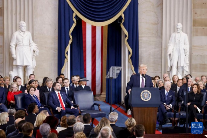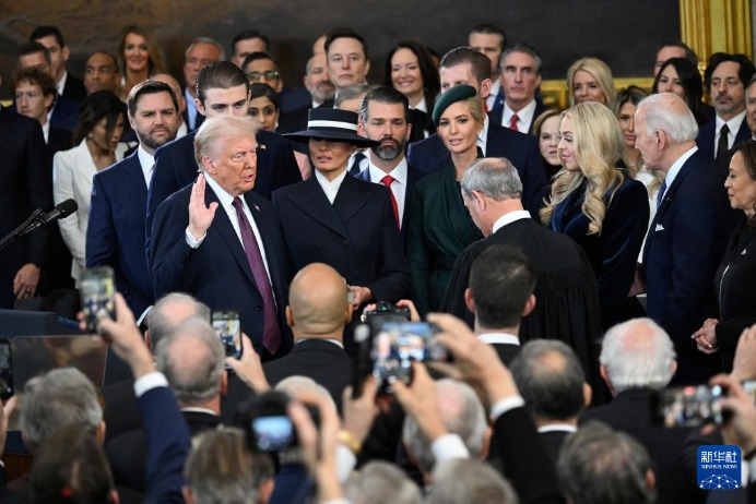 美国东部时间20日中午,特朗普在国会大厦圆形大厅宣誓就任美国第47任总统。 ![]() 1月20日,在美国首都华盛顿国会大厦圆形大厅,特朗普在美国第47任总统就职典礼上宣誓。新华社/美联 特朗普随后发表就职演讲。他说,美国政府面临信任危机。多年来,激进而腐败的既得利益集团从美国公民身上攫取权力和财富,而美国的社会变得破碎不堪,“几乎无可救药”。美国政府甚至无法应对简单的国内危机,在为外国提供源源不断军援时,却无法为本国人民提供庇护。 ![]() 1月20日,在美国首都华盛顿国会大厦圆形大厅,特朗普在美国第47任总统就职典礼上发表讲话。新华社/美联 特朗普宣布将签署一系列行政令,包括宣布南部边境进入国家紧急状态,并派遣军队抵御所谓非法移民“灾难性入侵”;宣布国家能源紧急状态,加大传统能源开采,结束拜登政府“绿色新政”,撤销电动车优惠政策以拯救美国传统汽车工业;建立对外税务局,对外国进口产品加征关税;宣布美国政府将只承认男女两个性别;将“墨西哥湾”改名为“美国湾”;将扩张美国领土,把美国国旗插上新的地平线;将把美国宇航员送往火星。 ![]() 1月20日,在美国首都华盛顿第一资本体育馆,人们观看美国第47任总统就职典礼的转播。新华社记者 吴晓凌 摄 美国副总统万斯当天也宣誓就职。
