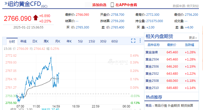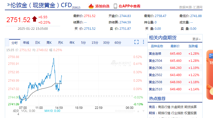 仅过了五天,沪金再次刷新纪录! 1月22日,沪金创出历史新高,盘中最高上冲至648.86元/克,超越1月17日643.92元/克的历史高点。截至收盘,沪金主力合约收涨1.28%,报645.46元/克。 国际市场上,截至15时36分,现货黄金报2751.52美元/盎司,纽约黄金CFD报2766.09美元/盎司。 ![]() ![]() 金饰市场上,周大福、老庙黄金、六福珠宝、周生生等金价均上涨至823元/克—833元/克区间内。 从二级市场来看,截至1月22日收盘,黄金股逆势活跃,山东黄金(600547.SH)收涨近5%,玉龙股份(601028.SH)、山金国际(000975.SZ)、老凤祥(600612.SH)等股均涨超3%。 值得一提的是,港股灵宝黄金(03330.HK)盘中一度涨超16%,创出2011年6月以来新高。截至收盘,上涨15.51%,报4.99港元/股,总市值62.05亿元。 在地缘政治、国际贸易经济等因素不确定性情况下,黄金避险的吸引力正在持续增加。多家机构看好黄金后市投资机会。 华福证券表示,短期来看,特朗普交易仍未完全消退,预计贵金属价格震荡为主。中长期角度来看,全球主要经济体货币政策方向明确,地缘冲突仍将凸显贵金属避险属性,中国央行11月增持黄金,贵金属中长期配置价值不改。 华源证券称,受多因素影响,短期金价振幅预计将持续加大,布局窗口期已至。长期来看,“降息交易”+“特朗普2.0”双主线将在2025年持续催化,央行增储将对金价形成强有力底部支撑,金价上行动能充足。央行增储方面,根据世界黄金协会,2023年央行黄金需求占总需求比重上升至23.4%,预计2025年购金态势将继续保持。 开源证券亦表示,看好黄金企业业绩更加线性释放。叠加对2025年金价继续上行判断,1月坚定看多黄金板块投资机会。 (声明:文章内容仅供参考,不构成投资建议。投资者据此操作,风险自担。) (文章来源:21世纪经济报道) (责任编辑:迷你学人) |