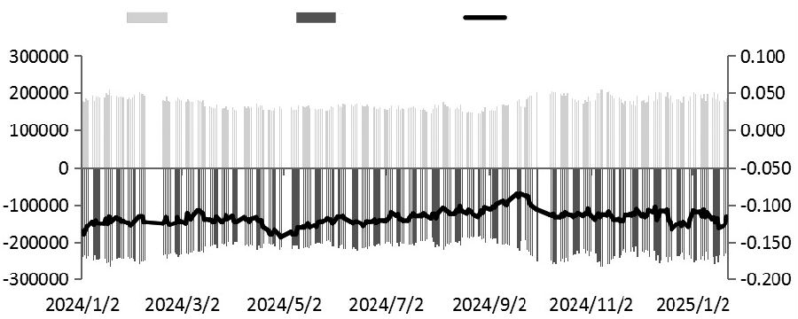 1月22日,A股震荡下行,上证指数低开低走,最低探至3203.38点,尾盘略有回升,最终收报3213.62点,日内走低0.89%。当日,期指四个品种走势继续分化,IM和IC相对抗跌,主力合约分别下跌0.21%和0.38%,IF和IH主力合约分别下跌0.99%和1.32%。基差方面,IF主力合约贴水小幅扩大至6.6点,IH主力合约由升水转为几近平水,IC及IM主力合约贴水则分别收窄至12.1点和12.7点。 期指持仓总量有所回升,四个品种当日共计增仓14555手,总持仓量攀至953126手。不过,各品种持仓变化方向并不一致。其中,IF增仓8658手,持仓量升至279695手;IH增仓10580手,持仓量升至113395手;IC增仓1328手,持仓量升至224912手;IM减仓6011手,持仓量降至335124手。 期指各品种前20(主力)席位持仓变化也存在差异。IF多头主力增仓7677手,空头主力增仓5111手,净空持仓量降至48576手;IH多头主力增仓8581手,空头主力增仓7400手,净空持仓量降至20924手;IC多头主力减仓573手,空头主力减仓761手,净空持仓量降至15490手;IM多头主力减仓6528手,空头主力减仓7088手,净空持仓量降至31137手。