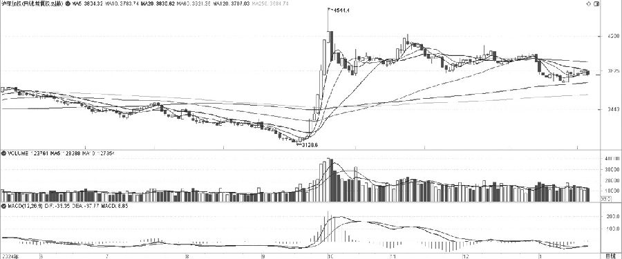 T加权短期处于高位震荡格局。均线方面,MA5与MA10、MA20黏合,均线系统多头排列格局改变,MA20为重要的移动支撑线。指标方面,MACD绿柱扩大,但DIF与DEA仍在零轴之上,表明T加权仍有上涨动力,但1月3日的高点为重要的压力位。(招商期货 于虎山) (责任编辑:迷你学人) |