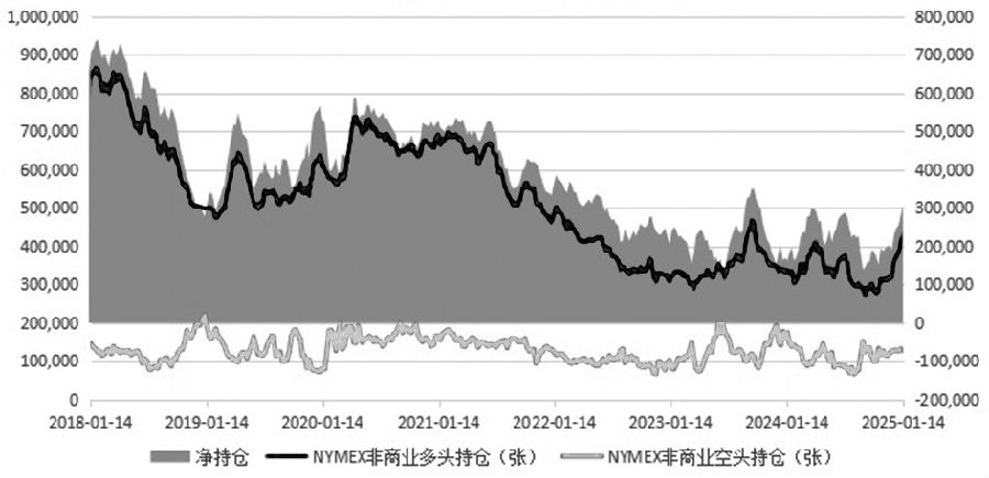 图为美国原油产量(单位:千桶/日) [国际原油市场净多头寸 近期大幅增加] 步入2025年以来,国际原油期货价格呈现持续回升的走势,市场做多力量显著增强。截至1月14日,WTI原油非商业净多持仓量平均维持在306291张,周环比大幅增加26724张,较2024年12月的均值224583张大幅增加81708张,增幅达36.38%。与此同时,截至1月14日,Brent原油期货基金净多持仓量平均维持在272165张,周环比大幅增加34368张,较2024年12月的均值175164张大幅增加97001张,增幅达55.38%。总体来看,WTI原油期货市场净多头寸周环比大幅增加,而Brent原油期货市场的净多头寸周环比也大幅增加。