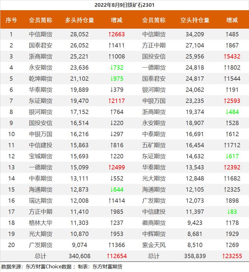 黑色持仓龙虎榜:铁矿跌1.36% 永安减持近2.3万手螺纹多单