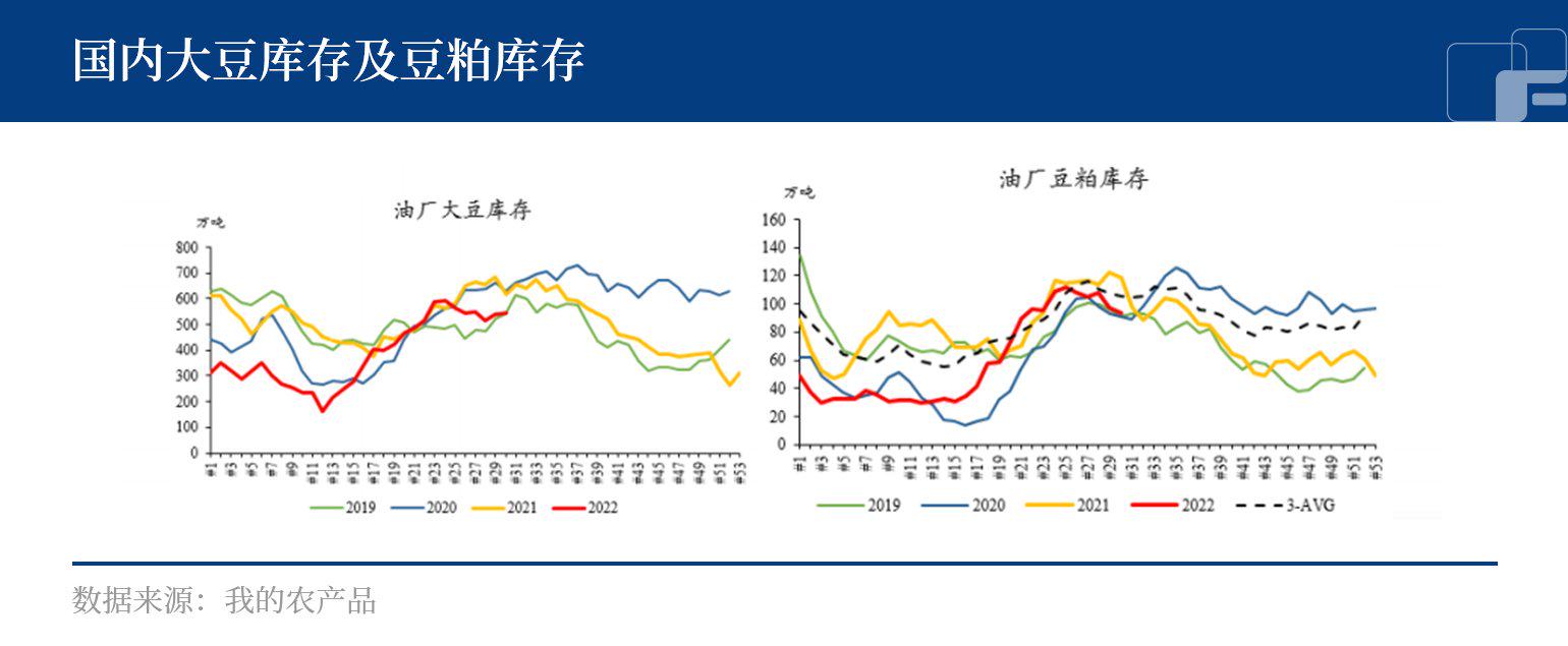 | 市场情况 国际方面,美国农业部公布周度出口销售报告,截至7月28日的一周,美豆21/22年度周度出口为52.76万吨,上周35.94万吨,去年同期为21.56万吨,其中对中国出口为5.28万吨,去年同期2.85万吨;美豆21/22年度周度新增销售减少了1.1万吨,上周减少5.9万吨,去年同期为1.14万吨。截至目前,美豆21/22年度累计装船5390万吨,去年同期累计销售为5932万吨,其中对中国累计销售为2897万吨,去年同期为3507万吨。 ![]() 国内方面,截至7月29日的一周,国内油厂大豆库存为541.78万吨,上周为538.63万吨,油厂豆粕库存为93.16万吨,上周为97.42万吨,压榨为174.31万吨,上周为167.73万吨。截至7月29日的一周,沿海菜籽库存为24万吨,上周为24万吨,沿海油厂菜粕库存为4.65万吨,上周为4.65万吨,压榨为2.3万吨,上周为2.3万吨。 国际方面 当前影响价格的因素在于宏观方面的影响以及关键生长期的天气情况。目前地缘政治方面仍然存在变数,使得美豆的出口前景具有一定的不确定性。 ![]() 从美国气象局公布的信息来看,8月中旬可能会出现有利于美豆生长的降水,高温天气地区面积或有所消减,改善前期偏干偏热的天气状况。8月下半月的降水前景较为良好,主产区墒情的改善挤压天气升水,美豆有所调整。从当前的情况来看,今年美豆新作的单产不会出现太大问题,8月是美豆生长关键期,仍然需要对天气预报进行密切关注。 国内方面 国内方面,后期的大豆到港将会减少已经成为市场共识,7-9月船期采购进度偏慢,加上压榨利润表现不佳使得油厂的挺价心态坚决,预计8月大豆到港750万吨,9月到港650万吨,为过去5年同期最低。根据Wind的数据,截至8月8日,全国进口大豆港口库存为685.93万吨,8月1日为691.34万吨,环比减少了5.41万吨,预计进口大豆库存将继续维持在一个较低水平。 ![]() 至于需求端,当前国内豆粕消费的短期变量在于生猪。今年以来生猪经历了一个跌宕起伏的走势,需要关注在生猪价格经历了暴涨之后,养殖户是否会提高配合饲料和浓缩饲料中豆粕用量占比,从而增加对豆粕的需求。从长期来看,则是养殖利润的恢复推动能繁母猪和仔猪的积极补栏,从而提升生猪存栏量和饲料消费量。 据饲料行业信息网统计数据显示,沿海地区43%蛋白豆粕价格为4277元/吨,较上周的4219元/吨上涨58元/吨。总体而言,国内豆粕基差预计表现坚挺,豆粕价格跟随美豆,可能出现先抑后扬的走势。 (文章来源:中粮期货) (责任编辑:admin) |