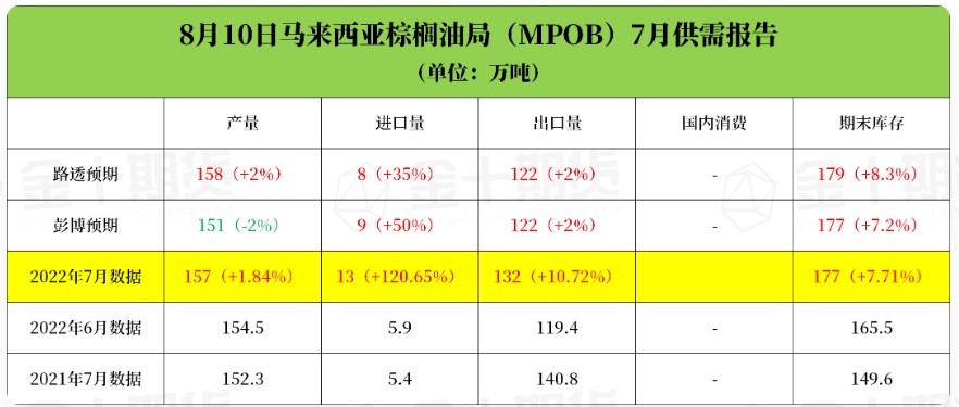 马来西亚棕榈局MPOB:马来西亚7月榈油库存为177万吨 环比增长7.71%
