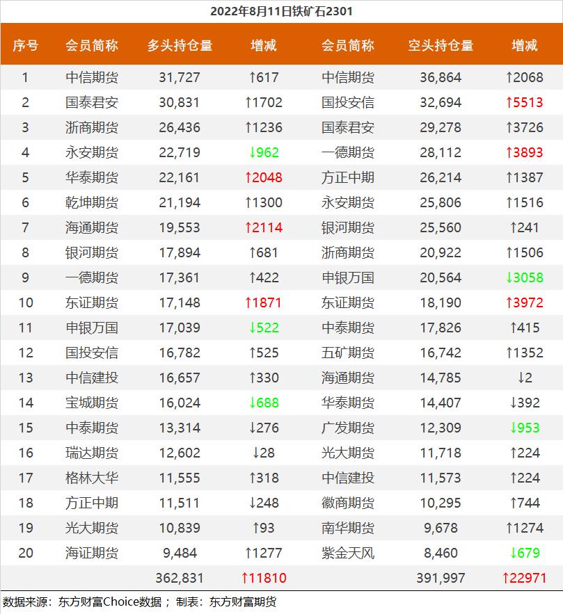 黑色持仓龙虎榜:铁矿涨2.28% 中信增持近7千手螺纹多单
