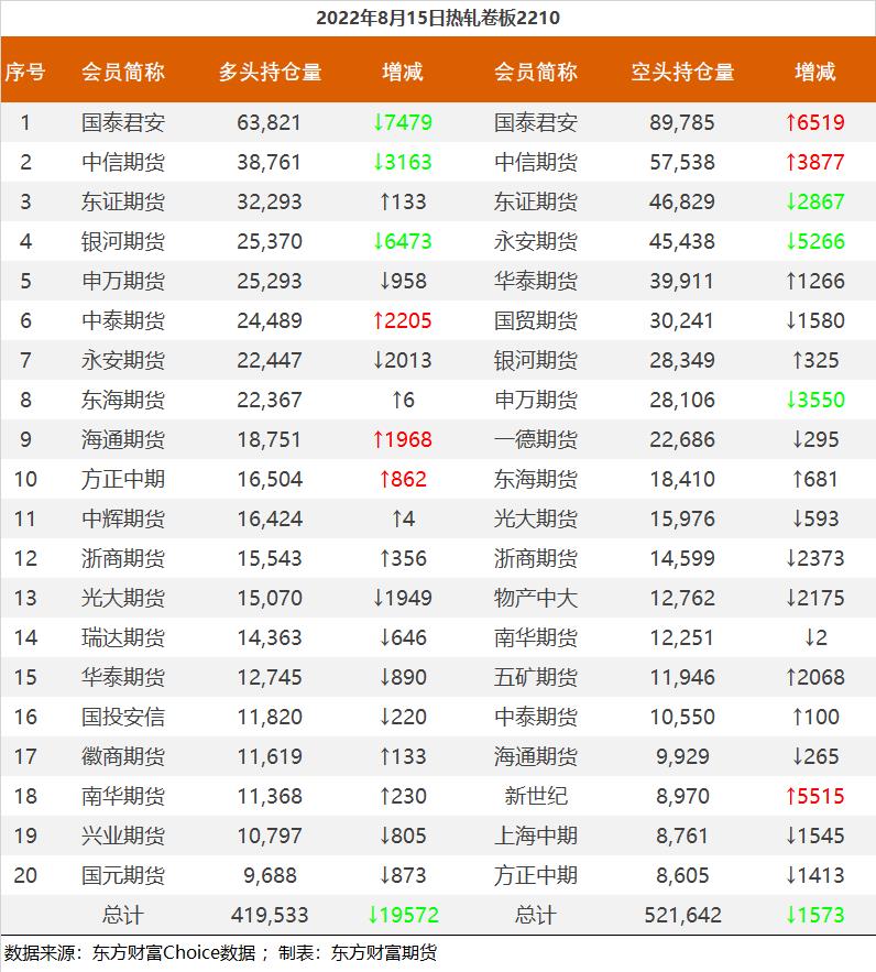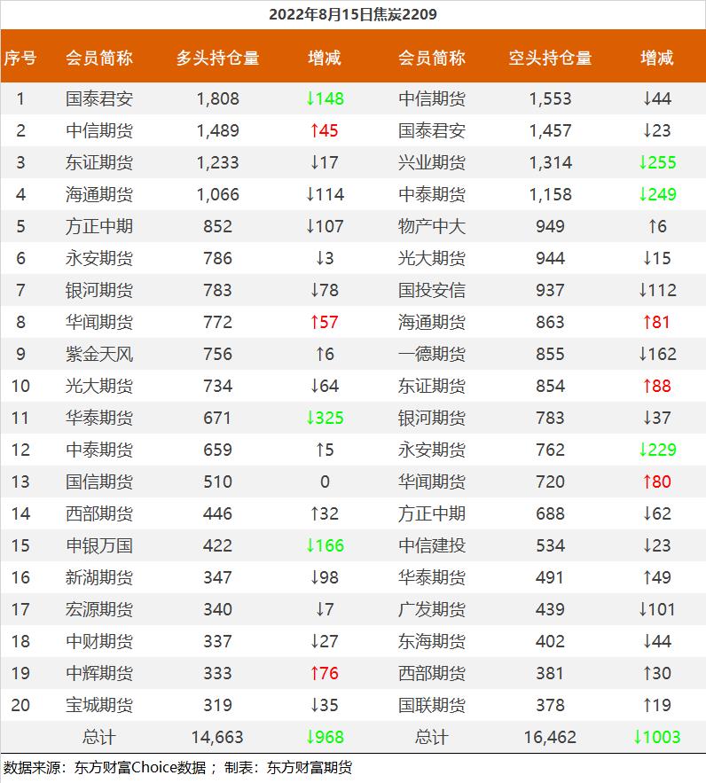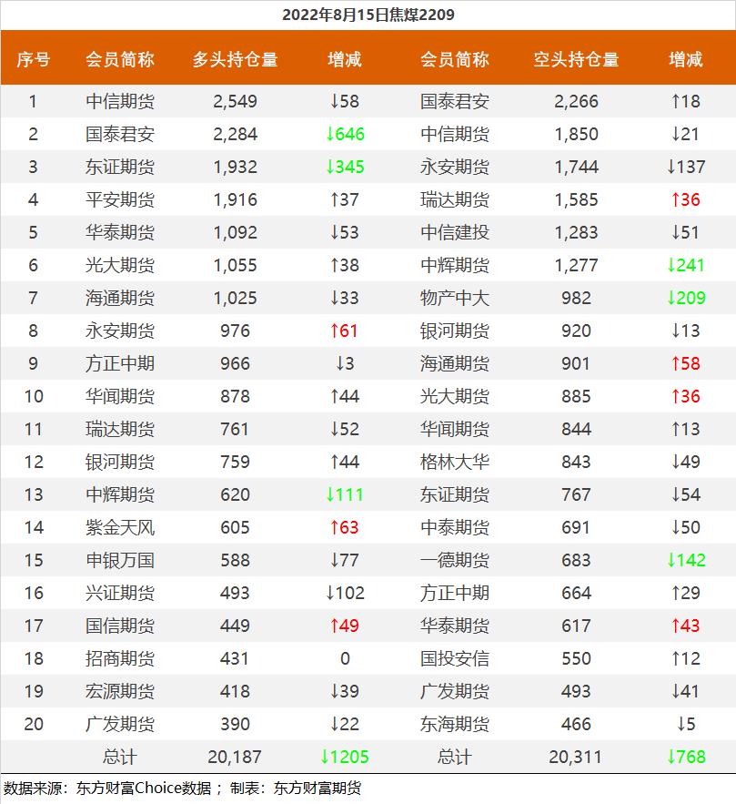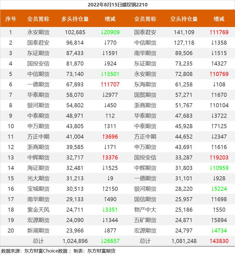 | 截至8月15日收盘,螺纹钢2210收4126元/吨,跌0.02%;热卷2210收4039元/吨,跌0.88%;铁矿石2301收707.5元/吨,跌2.88%;焦炭2209收2917.5元/吨,跌0.92%;焦煤2209收2151.5元/吨,跌0.81%。 螺纹钢2210合约前20席位多单减仓26657手至102.4万余手,空单增仓43830手至108.1万余手,整体净空56352手。其中永安期货多单减持20909手,空单增持10769手,整体净多29877手。 各品种具体如下: ![]() 各品种持仓情况具体如下: ![]() ![]() ![]() ![]() ![]() (文章来源:东方财富研究中心) (责任编辑:admin) |