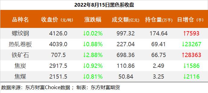 黑色持仓龙虎榜:铁矿跌2.88% 永安减持超2万手螺纹多单