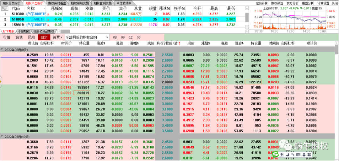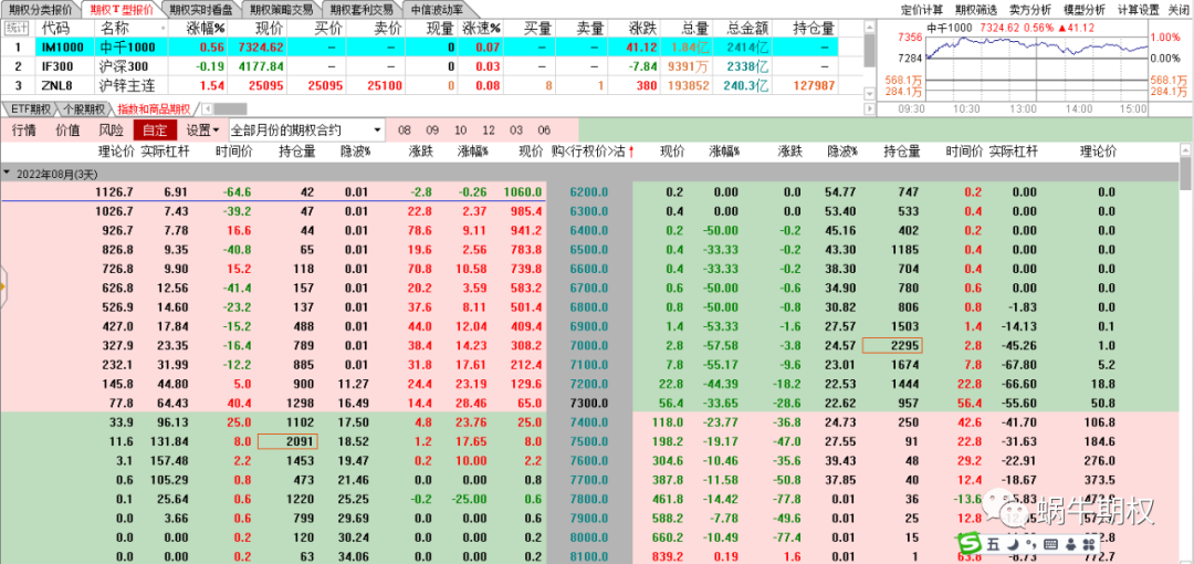 1000则是认购小幅度上涨,认沽跌幅较大。