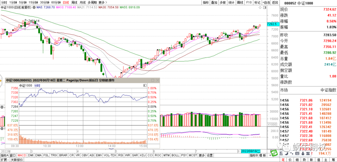 1000的走势则明朗一些,最近两周都是震荡上行,虽然速度变慢,但是还是逐渐新高了。