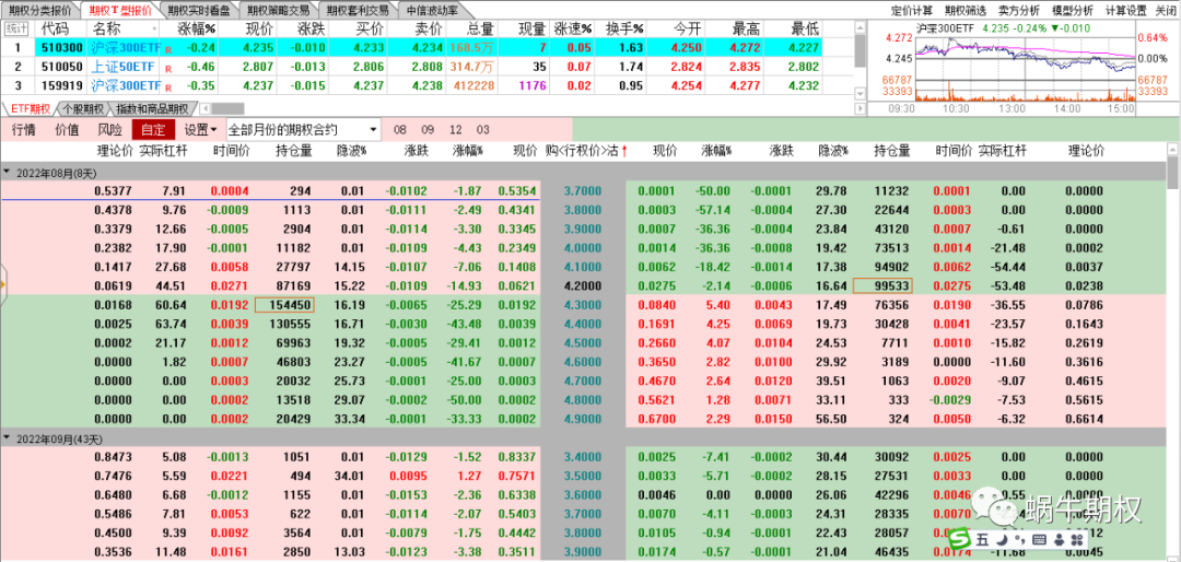 300的虚值认购大跌,虚值认沽也下跌,只有实值认沽小幅度上涨。