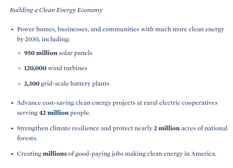 | 当地时间8月16日,美国总统乔·拜登签署了总价值为7500亿美元的《2022年通胀削减法案》(Inflation Reduction Act),令该立法正式生效。该立法的内容包括应对气候变化和扩大医疗保健覆盖范围等。 白宫表示,在接下来的几周内,拜登将前往全美各地阐明该立法将如何帮助美国人。拜登还将在9月6日举办庆祝该立法颁布的活动。白宫称,“这项历史性的立法将降低美国家庭的能源、处方药和其他医疗保健成本,应对气候危机,减少赤字,并使大型公司支付公平份额的税款。” 该立法拨款3690亿美元用于能源安全和气候投资,旨在到2030年将碳排放量减少40%。该立法还拨款640亿美元用于平价医疗法案补贴,将老年人的自付药物费用限制在每年2000美元。同时,该立法拨款800亿美元用于加强美国国税局的执法力度,并确保高收入的个人和公司不会逃税。此外,该立法还包括对股票回购征收1%的消费税。 白宫宣称,该立法将在未来十年内将政府的预算赤字减少约3000亿美元。 相关报道拜登签署《通胀缩减法案》 3690亿美元气候投资隆隆展开 美东时间周二15点30分许,美国总统拜登在白宫宴会厅举办仪式,签署《通胀缩减法案》并致辞。 签完字后,拜登也将签字用的笔递给了民主党参议员曼钦。正是由于曼钦作出妥协,才使得民主党内的僵局得以打破。 继上周签署本土芯片制造法案和老兵福利法案后,周二的通胀缩减法案也是民主党今年夏天一系列立法成就的顶峰,拜登籍此完成了气候、医改、税改等多个核心政治议程。在暑假结束后,美国将正式进入中期选举的倒计时状态,两党也将为此拼劲全力撕扯。 数读《通胀缩减法案》 简要来说,周二签署的这份法案将在未来十年里为美国政府增厚7000亿美元的利润,其中有4300亿美元将投资在可再生能源、医保项目上,多出来的钱将用于减少财政赤字。 但对于投资市场来说,这个大几千亿的数字还是过于抽象,所以白宫也很贴心地用实际的数字来展现该法案对每一个美国人民的影响。 在股民们最关心的3690亿美元清洁能源领域投资方面,白宫举例称,该法案的退税优惠到2030年前将为美国社会带来9.5亿块太阳能板、12万个风力发电机和2300个电网规模电池厂。 ![]() (来源:白宫) 同时750万美国家庭将受惠于这份法案,得以在安装屋顶光伏的同时获得30%的税收抵免,而光伏系统在使用周期内每年能够为每个家庭节省300美元。对于安装热泵等能源效率家居设备的家庭,最高能获得上万美元的直接补贴。而购买电动车的美国家庭,新车和二手车还能分别获得7500美元和4000美元的补贴。 在药品改革领域,白宫预期随着联邦医保集采落地,约500-700万被保险人能感知到他们的处方药支出减少,另外数百万糖尿病患者每个月花在胰岛素上的开支也会被限制在35美元。而联邦医保受益人的每年处方药自费支出也将控制在2000美元以内。 税改方面数字稍显单薄,白宫只是强调了美国前1%的群体每年“避税”达到1600亿美元,而该法案在未来十年能从这些人手里多获取1240亿美元税款。拜登在讲话中特别强调,年收入低于40万美元的家庭不会因为这项法案多交1分钱。 白宫表示,周二的签字仪式只是该法案落地的步骤之一,拜登将在未来几周内举行多场内阁会议商讨执行事宜,同时也会展开巡回演讲告知民众该法案的好处,并将在9月初举办一场庆祝法案落地执行的活动。 (文章来源:央视新闻) (责任编辑:admin) |