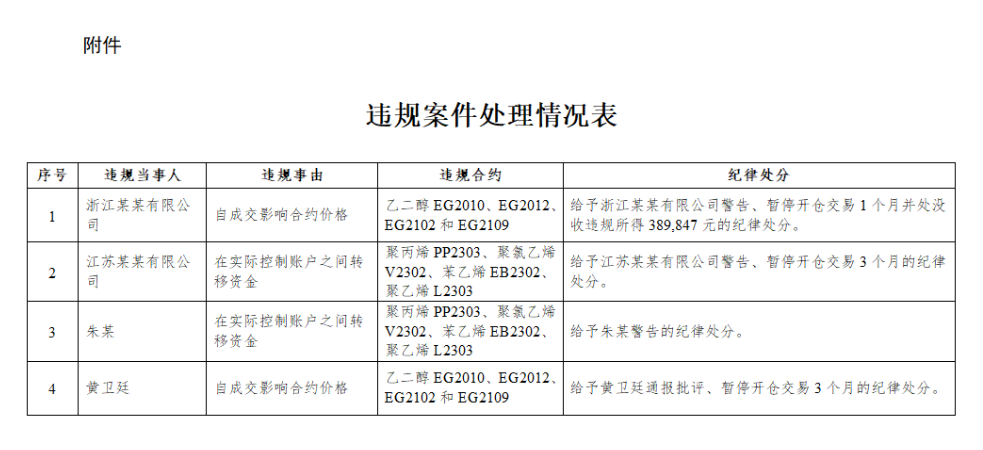 | 关于违规案件处理情况的公告 〔2022〕60号 近期,我所调查审理了2起违规案件,决定对4名违规客户实施纪律处分。 请各会员单位和投资者提高合规和风险意识,严格遵守法律法规和交易所各项规则,自觉维护期货市场秩序。 特此公告。 附件:违规案件处理情况表 ![]() 大连商品交易所 2022年8月17日 (文章来源:大连商品交易所) (责任编辑:admin) |