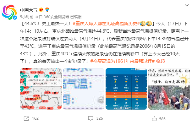 44.6℃!重庆人每天都在见证新历史!高温“杠”上川渝?再熬一周或缓