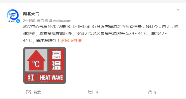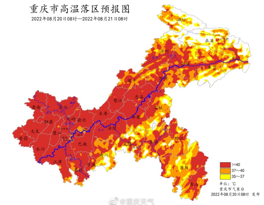 | 高温预报图被烫红了! 据央视新闻,中央气象台网连续9天发高温红色预警,预计今天白天,陕西、四川、重庆、湖北、湖南等地的部分地区最高气温将超40℃。过去一个月,35℃以上高温天气覆盖了我国450万平方公里的面积,杭州、南昌、上海、重庆、长沙等地高温日数超25天。 ![]() 图片来源:中央气象台网 湖北:局部42~44℃ 据湖北天气官方微博,武汉中心气象台2022年08月20日06时37分发布高温红色预警信号:预计今天白天,除神农架、恩施高海拔地区外,我省大部地区最高气温将升至39~41℃,局部42~44℃,请注意防范! ![]() ![]() 图片来源:湖北天气官方微博 重庆天气:未来三天我市持续晴热高温,最高45℃ 据重庆天气官方放微博,20日白天到夜间,各地晴间多云,气温24~45℃;中心城区晴间多云,气温34~43℃。 21日白天到夜间,各地晴间多云,气温24~44℃;中心城区晴间多云,气温34~43℃。 22日白天到夜间,各地晴间多云,气温24~45℃;中心城区晴间多云,气温34~43℃。(重庆市气象台8月20日9时发布) ![]() 图片来源:重庆天气官方微博 中国天气网盘点了省会级大城市的高温数据,推出全国高温耐力榜、夜间火炉榜等四大榜单,看看今年夏天哪里最难熬。 30天连续打卡 杭州登顶全国高温耐力榜 今夏,我国经历了1961年有完整气象观测记录以来的最强高温过程,具有持续时间长、范围广、强度大、极端性强等特点。中国天气网气象分析师张娟介绍,与往年相比,今年的高温过程耐力格外持久,我国6月以来的平均高温日数为1961年有完整气象观测记录以来历史同期最多。 据中国天气网盘点省会级城市气象大数据发现,多个城市高温日数超过40天,尤其是7月下旬至今,高温连续打卡,超长待机。杭州从7月20日到8月18日高温全勤,以30天连续高温登上“耐力榜”冠军。福州、重庆以26天并列第二,上海和武汉则以19天并列第三。 ![]() 图片来源:中国天气网 40℃成“标配”破纪录变日常 这些城市进入疯狂高温榜 这轮高温过程不仅持久,极端性也强,气温突破40℃的城市比比皆是。不少网友吐槽“已经热麻了”“42℃已经挤不进前十排行榜了”。 统计显示,6月1日至8月18日,我国共有277个国家气象站日最高气温突破历史极值。其中,重庆的北碚、江津、奉节、潼南、巫溪,湖北竹山,河北的灵寿、藁城、正定,云南盐津等10站日最高气温达44℃或以上,最高的北碚达45℃。 不少省会级城市的最高气温、40℃及以上的日数也纷纷打破历史最高纪录。以重庆沙坪坝为例,截至8月18日,40℃及以上日数达17天,为历史最多,其中,8月17日最高气温达到43.2℃,打破当地1951年以来的最高纪录。 ![]() 图片来源:中国天气网 此外,福州、杭州的日最高气温也打破了1951年以来的最高纪录,上海徐家汇则是追平了百余年的气温最高纪录。 据悉,8月19日13时45分左右,上海徐家汇站气温达到40.1℃。这是上海今夏诞生的第七个40℃+,继8月11日突破极端酷热天数历史纪录之后,再次刷新纪录。 连轴热!昼蒸夜煮难喘息 重庆当选夜间火炉王 据中国天气网统计的省会级大城市最低气温值来看,重庆的这种情况最为突出,它凭借34.9℃的最低气温,成为实实在在的夜间火炉王。 值得一提的是,重庆在今年7月13日以33℃打破最低气温最高纪录后,之后多次刷新纪录,最终8月19日将最低气温最高纪录暂时定格在34.9℃,当地几乎经历了全天候高温考验。 ![]() 图片来源:中国天气网 热化了!今夏十大“桑拿城”出炉,北方占三席 今年的高温强度强、波及范围大,不仅是南方高温炙烤,北方不少地区也体验了常年少有的持续桑拿天。根据今年6月以来的桑拿天日数统计,上海、成都、海口、郑州、武汉、合肥、长沙、广州、济南、北京成为今夏“十大桑拿城”。 ![]() 图片来源:中国天气网 (文章来源:每日经济新闻) (责任编辑:admin) |