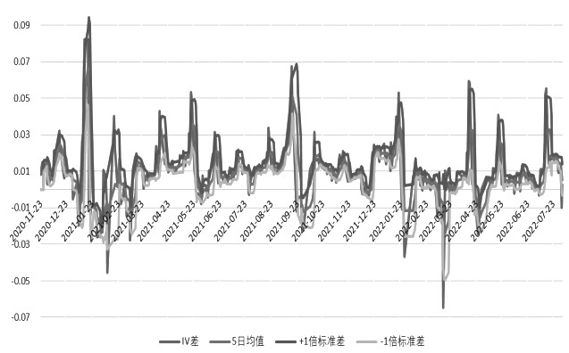图为沪深300股指期权:当月与下月合约IV差 因此,本文将尝试在沪深300股指期权的当月和下月合约之间,寻找一种相对稳健的跨月价差交易策略。 隐含波动率是一种特用于衡量期权定价的指标。在实践中,期权价格是市场交易的结果,是一种市场价格。与之相对应的是理论价格。通常情况下,人们用“布莱克-斯科尔斯期权定价模型”(BS模型)来进行期权理论定价。在该模型中,需要用到标的价格、无风险利率、行权价格、期限、波动率等参数。其中,只有波动率参数无法直接在市场中找到。于是,人们便把期权市场价格与BS模型相结合,将期权市场价格和其他能在市场中找到的参数代入BS模型中,从而倒推出波动率参数。该波动率被称为隐含波动率。正是这种数学推导原理,使得隐含波动率被理解为衡量期权价格水平的指标。一般来说,如果某个期权合约的隐含波动率过高或过低,则该期权可被理解为定价过高或过低。 [2] [当月与下月:隐波有差额,且存在规律性波动] 从理论上来说,相关联的不同期权合约的隐波之间也会有一定的关联性、规律性,例如同品种、同行权价但不同月份的期权合约。wind金融数据库可查询IO不同月份的平值期权隐含波动率指数(使用平值期权的隐波数据,可尽可能地减少期权价值状态大小等方面的影响)。本文以该指数为样本,研究发现IO当月平值合约的隐波与下月平值合约的隐波之间存在一定差额,且差额数值存在一定程度上的规律性波动,即隐波差额数值在5日均值上下波动,且波动轨道类似于5日均值±1倍标准差,若有向上或向下的突破,短期大概率会出现回归。 既然存在上述规律,本文将尝试对该现象进行一种新的价差交易模拟,具体操作方法如下: 1.权利仓与义务仓的选择:若隐波差(下月平值隐波减去当月平值隐波)向上突破上轨(隐波差5日均值+1倍标准差),则卖下月平值期权,买入当月平值期权。反之,卖当月平值期权,买下月平值期权。 2.看涨与看跌的方向选择:“同对交易,看涨、看跌方向一致”“看涨、看跌均被选择”原则,即构成2种组合——“卖下月平值看涨/看跌期权各1手(或相同数量),买入当月平值看涨/看跌期权各1手(或相同数量)”“卖当月平值看涨/看跌期权各1手(或相同数量),买下月平值看涨/看跌期权各1手(或相同数量)”,以此来尽量减少标的价格波动带来的影响。 3.开仓数量:各1手,即共4手、2对。 4.开仓价格(回测时的模拟价格):信号出现当日的结算价。 5.平仓时机与平仓价格(回测时的模拟价格):隐波差回归正常时,或合约到期时。平仓模拟价格可用当日的结算价代替。 6.回测模拟时间选择:wind平值IV数据始于2020年11月下旬,本文回测时间也始于此。 7.其他假设:合约到期日出现交易信号,选择下月合约和下下月合约进行交易;相反的交易信号连续出现时(中间未间隔交易日),只平仓,不新开仓;模拟市值权益时,暂不考虑保证金占用情况。 通过回测模拟回测,笔者发现:该策略中长期可实现相对稳定的盈利,且回撤相对可控。其中: 1.沪深300企稳时,盈利有望激增:前期指数高波动,易造成隐波差额扩大。而指数的快速企稳,易造成隐波差额回归正常,从而提供扩大盈利的机会。 2.沪深300由“低波动”转向“高波动、指数进行方向性选择”时,本策略盈利机会较大。 3.沪深300“V”形趋势反转,盈利难度会有所提升。这或可解释为:该时点前后,沪深300均处于高波动状态,但方向相反。此时,期权隐波也相对较高,权利金较贵。但标的方向的“V”形反转,或加速错误方向的期权价格的过快消退,从而给本策略带来一定难度。 4.本文的交易策略在不同市场行情下,获利难易程度不同,例如:本策略在振荡市中获利难度较大。 5.本策略暂未考虑日内、盘中出现的交易机会。 实操中,该策略或可从以下角度进行完善: 1.临近期权到期日时,期权价值更易产生大幅波动,俗称“末日轮”。实操中,若在到期前产生一定盈利,可考虑提前平仓、变现,以防止临近到期时价格的不利变动。 2.本策略未考虑期权盘中情况。若条件允许,未来可进一步在盘中寻找“潜在的套利机会”。 [3] [未来展望:波动加大,价差交易机会仍存] 2022年,全球多个主要经济体进入加息周期,全球经济存在衰退预期,大宗商品具有高位回落压力。宏观经济波动加大,沪深300也出现多次较大的波动。预计该现象中短期仍将持续,沪深300股指期权的跨月价差交易仍将存在较多机会。 风险提示:历史数据不能代表未来,过去模拟数据不代表未来也如此。