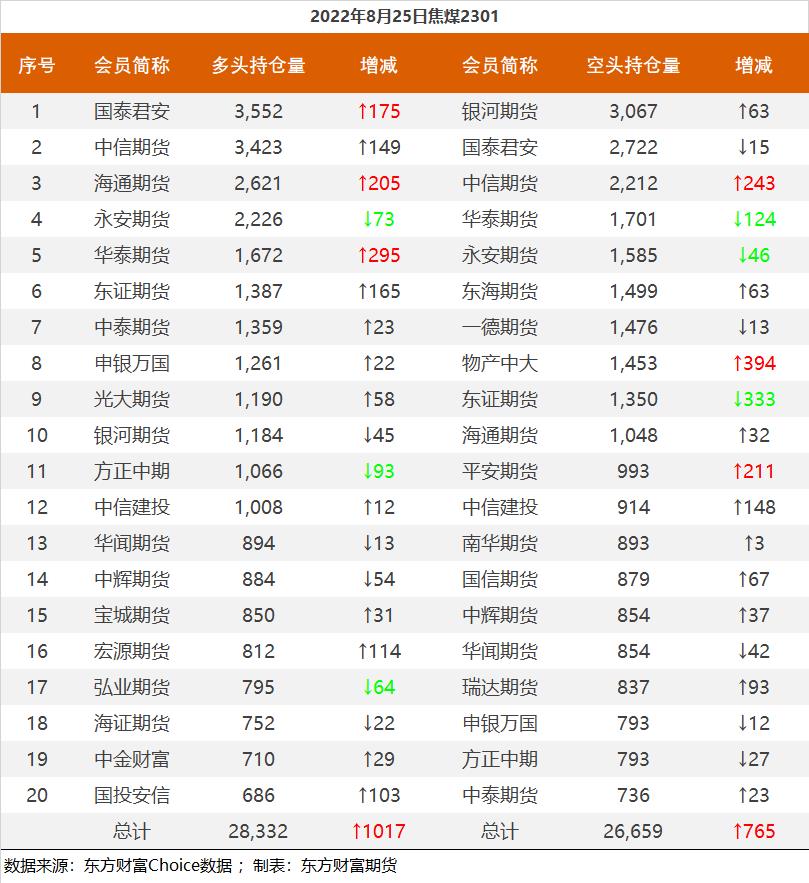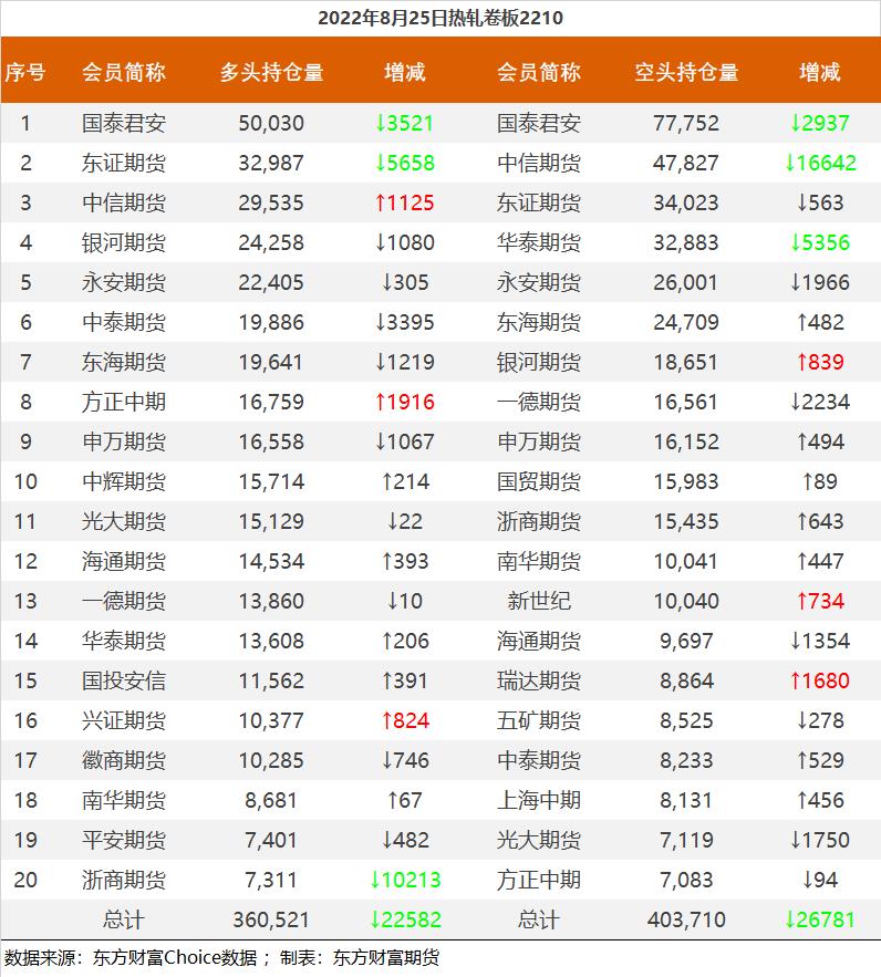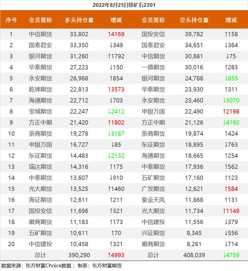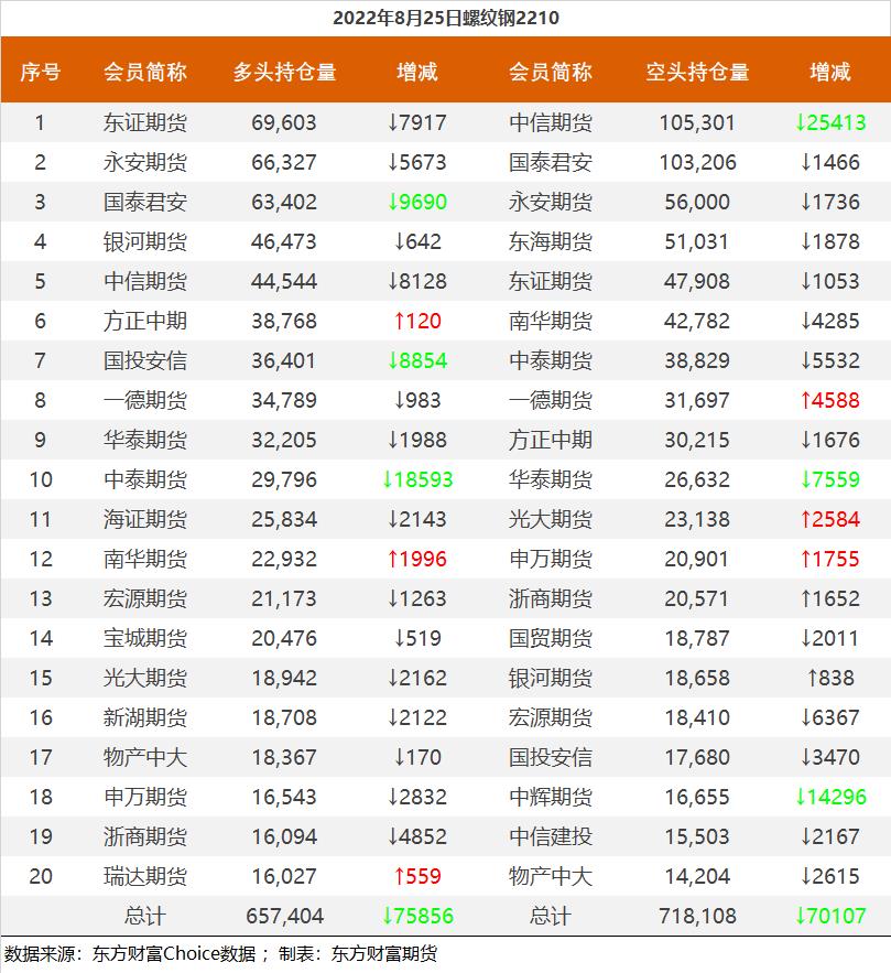 | 截至8月25日收盘,螺纹钢2210收4052/吨,跌0.3%;热卷2210收4000元/吨,涨0.6%;铁矿石2301收705.5元/吨,跌0.21%;焦炭2301收2628元/吨,涨1.47%;焦煤2301收1960.5元/吨,涨0.28%。 螺纹钢2210合约前20席位多单减仓75856手至65.7万余手,空单减仓70107手至71.8万余手,整体净空60704手。其中中信期货多单减持8128手,空单减持25413手,整体净空60757手。 各品种具体如下: ![]() 各品种持仓情况具体如下: ![]() ![]() ![]() ![]() ![]() (文章来源:东方财富研究中心) (责任编辑:admin) |