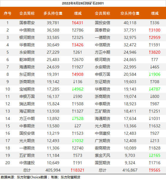 黑色持仓龙虎榜:铁矿涨3.01% 国泰君安增持超1.7万手螺纹多单