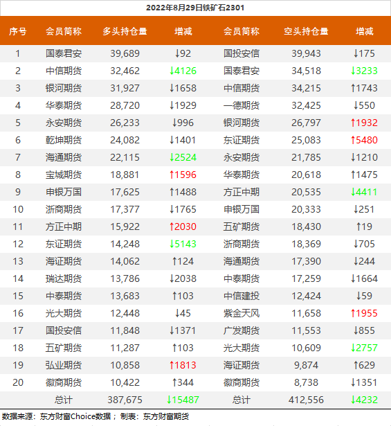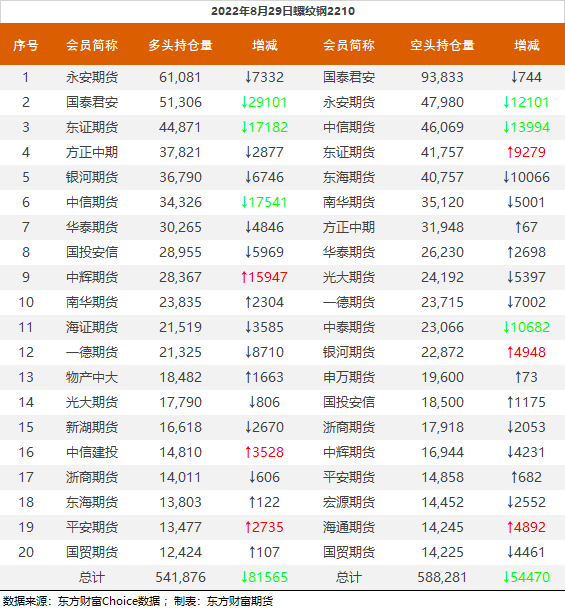 黑色持仓龙虎榜:螺纹跌2.77% 国泰君安减持2.9万手螺纹多单