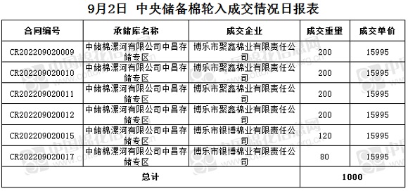 8月10日以来首次成交!9月2日储备棉轮入成交率17% 成交均价15995元/吨 中国棉花信息网 09月02日 9月2日中央储备棉轮入上市数量6000吨,实际成交1000吨,成交率17%。今日平均成交价为15995元/吨。 其中内地库成交1000吨,成交承储库1家。 今日成交情况如下:(文章来源:中国棉花信息网) (责任编辑:admin)