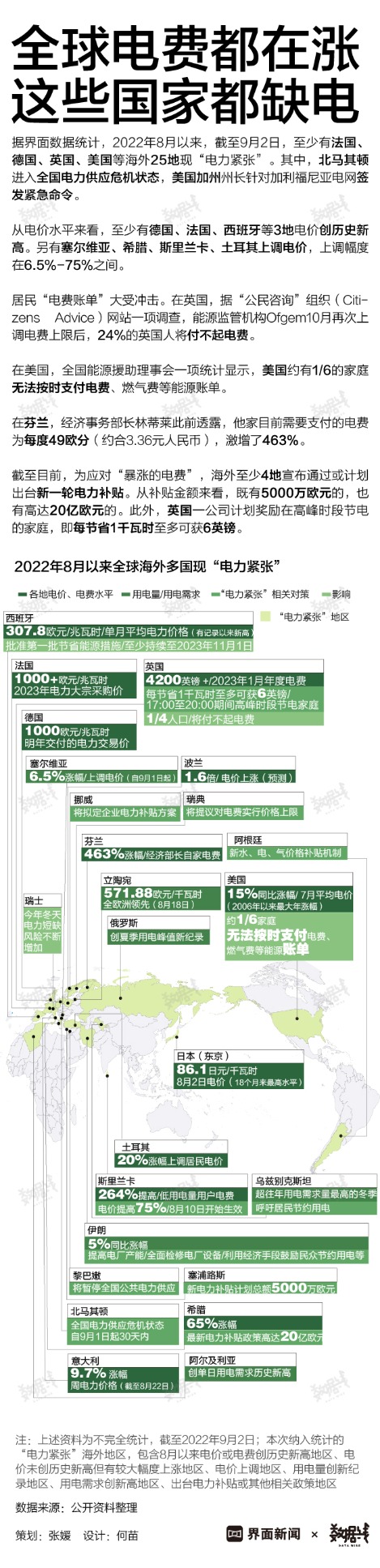 图解:全球电费都在涨 这些国家都缺电 界面新闻 09月03日 从电价水平来看,至少有德国、法国、西班牙3地电价创历史新高。另有塞尔维亚、希腊、斯里兰卡、土耳其上调电价,上调幅度在6.5%至75%。(文章来源:界面新闻) (责任编辑:admin)