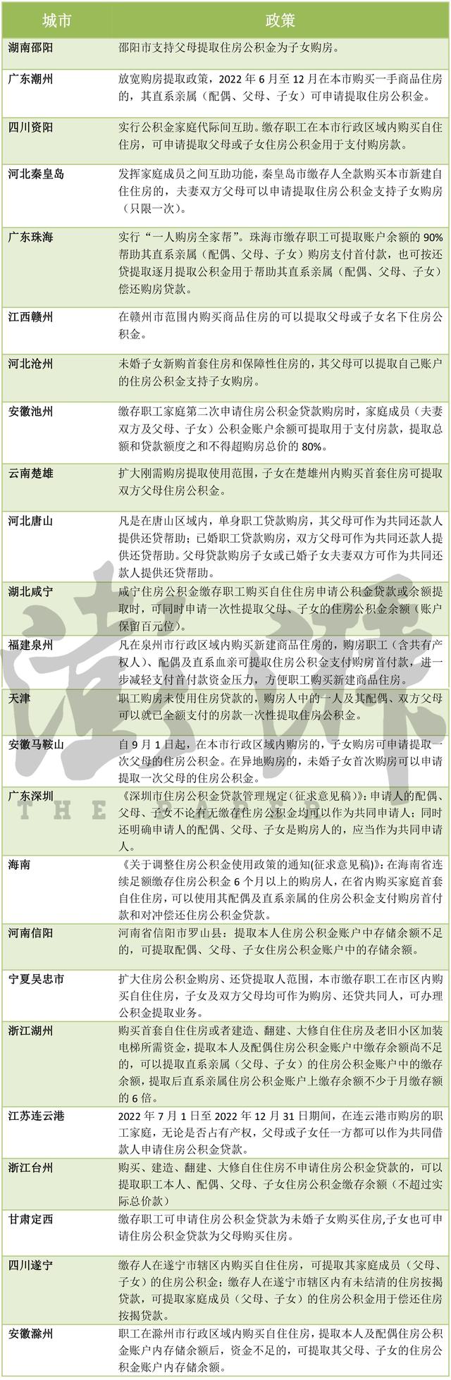 | 越来越多的城市出台公积金新政,明确直系亲属可提取住房公积金用于支付购房款或者偿还房贷,实行“一人购房全家帮”。 据澎湃新闻不完全统计,今年以来,至少包括湖南邵阳、广东潮州、四川资阳、河北秦皇岛、广东珠海、江西赣州、河北沧州、安徽池州、云南楚雄、河北唐山、湖北咸宁、福建泉州、天津、安徽马鞍山、广东深圳、海南、河南信阳、宁夏吴忠市、浙江湖州、江苏连云港、浙江台州、甘肃定西、四川遂宁、安徽滁州等20余个省市发布公积金贷款新政,多地在政策中提到,子女购房可提取父母公积金,实行“一人购房全家帮”。 ![]() 以四川遂宁为例,9月5日,四川省遂宁市住房和城乡建设局发布《遂宁市主城区进一步促进房地产业平稳健康发展的政策措施》政策解读。《措施》显示,实施住房公积金阶段性支持政策,缴存人在遂宁市辖区内购买自住住房,可提取其家庭成员(父母、子女)的住房公积金;缴存人在遂宁市辖区内有未结清的住房按揭贷款,可提取家庭成员(父母、子女)的住房公积金用于偿还住房按揭贷款。 近日,海南省住房公积金管理局制定的《关于调整住房公积金使用政策的通知(征求意见稿)》也提及了相关内容,《征求意见稿》提及推行“一人购房全家帮”相关住房公积金互助使用政策,保障缴存人住房刚性需求。 根据《征求意见稿》,“一人购房全家帮”是指在海南省连续足额缴存住房公积金6个月以上的购房人,在省内购买家庭首套自住住房,可以使用其配偶及直系亲属的住房公积金支付购房首付款和对冲偿还住房公积金贷款。 《征求意见稿》明确,直系亲属是指购房人及其配偶的父母或子女。购房人直系亲属家庭在海南省无未结清的住房公积金贷款且住房不超过1套(2孩及以上家庭可放宽至2套),方可申请办理直系亲属的购房提取和对冲还贷业务。 另以河南信阳为例,9月1日,河南省信阳市罗山县发布的《罗山县人民政府办公室关于印发罗山县促进房地产市场平稳健康发展若干措施(试行)的通知》则显示,提取本人住房公积金账户中存储余额不足的,可提取配偶、父母、子女住房公积金账户中的存储余额。 诸葛找房数据研究中心分析师梁楠指出,从形式上来看,“一人购房全家帮”政策调整分别从帮还贷、帮提取公积金付首付以及提取亲属公积金用于支付购房款等方面展开,这进一步体现了政策调整的灵活性和形式的多样性,同时也呼应支持居民合理住房需求的政策导向。 梁楠认为,此类政策的出台主要是由于当前楼市修复进程缓慢,加之多地疫情有所反复,导致房地产交易市场走弱,各城因城施策适度调整楼市政策,通过直系亲属的助力来分担购房者的经济压力,从需求端修复居民购买力,助力居民购房情绪的提振,为全国公积金政策的调整提供一个调整范例,具有一定的创新性。预计后续一些楼市景气度不高的城市有望跟进此类政策,促进市场预期修复。 相关报道 “一人购房全家帮”再扩容!多地又有新动作 降首付比例 提高贷款额度 全国21城实施公积金“一人购房全家帮” 多地贷款额度可覆盖刚需购房 又有两城“一人购房全家帮” 业内:购房者信心仍需政策加码 “金九银十”! 多地调整住房公积金政策 市场怎么走 (文章来源:澎湃新闻) (责任编辑:admin) |