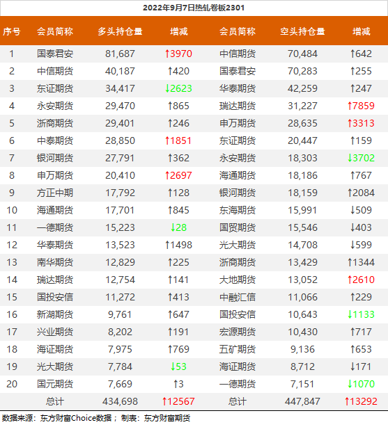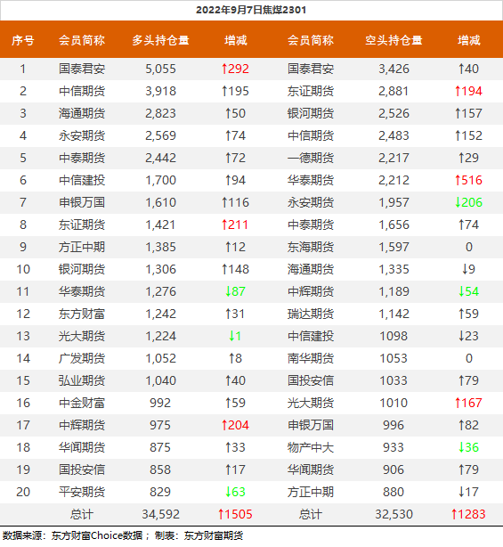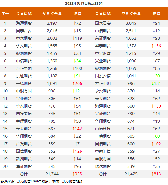 | 截至9月7日收盘,螺纹钢2301收3673元/吨,跌0.51%;热卷2301收3761元/吨,涨0.19%;铁矿石2301收680元/吨,跌1.73%;焦炭2301收2430元/吨,跌1.8%;焦煤2301收1822.5元/吨,跌2.04%。 螺纹钢2301合约前20席位多单增仓11817手至95万余手,空单增仓899手至105.7万余手,整体净空107046手。其中中信期货多单增持241手,空单增持7396手,整体净空103486手。 各品种具体如下: ![]() 各品种持仓情况具体如下: ![]() ![]() ![]() ![]() ![]() (文章来源:东方财富研究中心) (责任编辑:admin) |