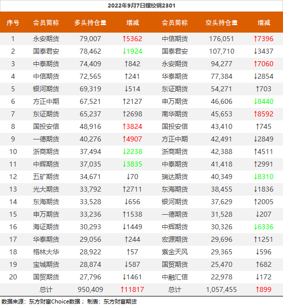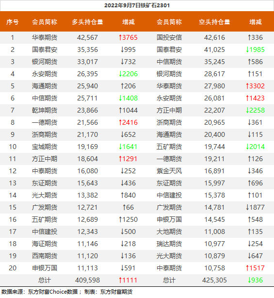 黑色持仓龙虎榜:铁矿跌1.73% 中信增持超7千手螺纹空单