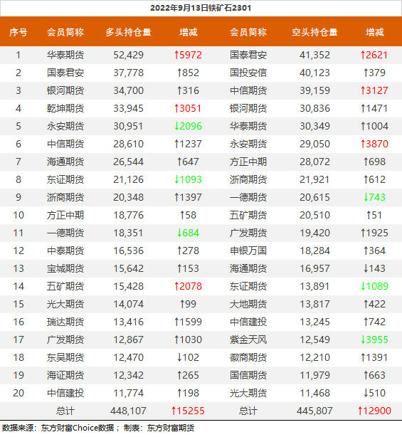 黑色持仓龙虎榜:铁矿涨1.96% 中信增持超1.1万手螺纹空单