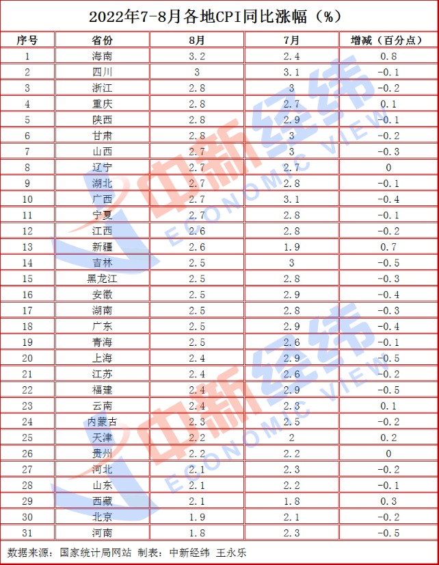 31省份8月CPI出炉:23地物价涨幅收窄 京、豫重回“1时代”