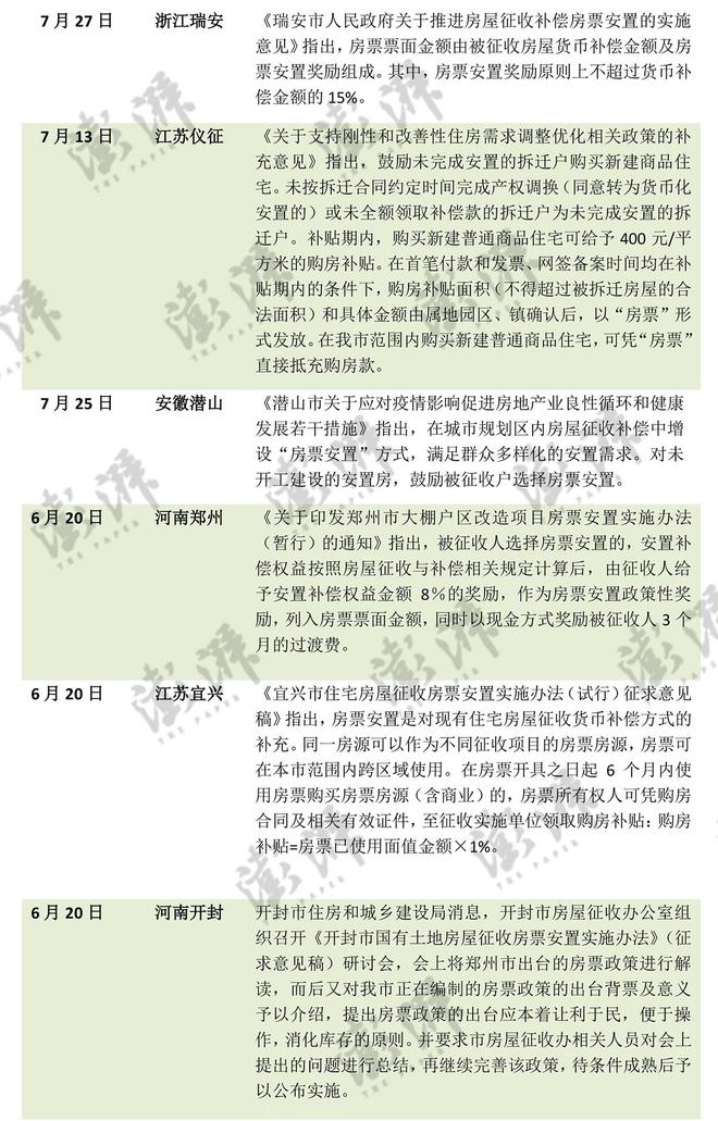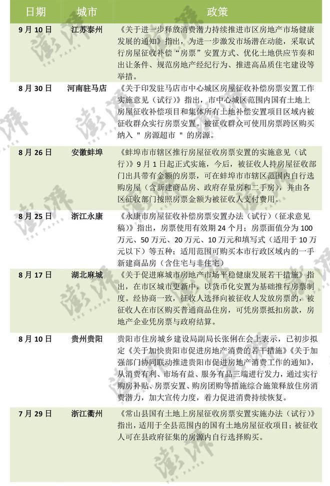 | 近日,济南一国企拟收购3000套存量商品房一事引发热议。 9月7日,据《济南时报》报道,济南市国资委官网于9月5日发布《收购存量房源助力租赁市场——集团公开采购社会优质存量房作为租赁储备房源》。从同时发布的3份招标公告来看,济南城市发展集团所属济南城市发展集团资产运营管理有限公司将在全市收购3000套商品房,用于租赁储备住房,项目资金来源为自筹资金。 从公开信息看,济南城市发展集团有限公司于2020年7月12日批准成立,注册资金50亿元,为济南市市属一级国有独资的功能性企业。 不过,上述提及的《收购存量房源助力租赁市场——集团公开采购社会优质存量房作为租赁储备房源》一文当前已不在济南市国资委官网显示。 据“红星新闻”9月9日报道,目前招标仍在继续,将分批开标,以具体的通知为准。 济南国企收购存量房源用于租赁市场只是地方盘活存量房的一个缩影。除了收购存量房用于租赁住房,今年来,多地政府出台相关政策盘活存量住房,包括鼓励房企收购滞销房用作保障安置房、推出房票安置措施等。 多地盘活存量房用于安置房、保障性租赁住房 除了上述提及的济南,浙江湖州也推出过类似的政策。今年8月15日,浙江省湖州市房地产市场平稳健康发展联席会议办公室发布《关于持续促进我市房地产平稳健康发展的通知》提到,鼓励收购滞销房。对困难房地产企业的滞销房,鼓励国有企业收购,作为保障安置用房等。 9月10日,河北省邯郸市磁县发布的《关于支持房地产业良性循环和健康发展的十条政策措施》显示,根据磁县棚户区、城中村改造需求,可购置存量商品房用作异地安置住房,或者提高货币化安置比例,积极盘活存量市场房源。房地产去化周期偏长的项目可申请转化为保障性租赁住房,避免重复建设。 ![]() 30城探索实施“房票”政策 另据澎湃新闻不完全统计,今年以来已有至少30城探索实施“房票”政策,以期拉动市场需求加快推进房地产行业复苏。 这里所说的“房票”安置,通常是指在拆迁安置过程中,对现有住宅房屋征收货币补偿方式的一种补充。房票是被征收人房屋安置补偿权益货币量化后,征收人出具给被征收人购置房屋的结算凭证。也就是说,房票安置并非直接领取安置款,而是拿着房票买房,并抵扣房款。 据澎湃新闻不完全统计,仅今年以来,至少包括河南郑州、江苏宜兴、河南开封、江苏南京、浙江温州、江苏张家港、浙江龙港、浙江海宁、浙江金华、湖北鄂州、浙江丽水、浙江宁波、浙江温岭、河南许昌、福建邵武、江苏江阴、安徽界首、江苏常熟、河南信阳、四川宜宾、安徽潜山、江苏仪征、浙江瑞安、浙江衢州、贵州贵阳、湖北麻城、浙江永康、安徽蚌埠、河南驻马店、江苏泰州等30城探索实施相关“房票”安置政策。 ![]() ![]() ![]() ![]() ![]() 以江苏泰州为例,9月10日,“泰州发布”官方微信公众号发布消息显示,江苏省泰州市住建局等七部门联合印发《关于进一步释放消费潜力持续推进市区房地产市场健康发展的通知》,《通知》称,为进一步激发市场潜在动能,采取试行房屋征收补偿“房票”安置方式、优化土地供应节奏和出让条件、规范房地产经纪行为、推进高品质住宅建设等举措。 河南驻马店于8月30日发布《关于印发驻马店市中心城区房屋征收补偿房票安置工作实施意见(试行)》,《意见》指出,市中心城区范围内国有土地上房屋征收补偿项目和集体所有土地补偿安置项目区域内被征收群众实行房票安置。被征收群众可使用房票跨区购买纳入“房源超市”的房源。 诸葛找房数据研究中心分析师关荣雪指出,多地政府通过收购、转化保障房,发房票等举动对于盘活市场和加速楼市去化具有一定积极意义,除此之外,还能促进其他市场层面的良性发展。首先,收购、转化保障房既在一定程度上盘活存量房、缓解库存压力,又吻合了租赁住房市场多渠道供给和多渠道筹集房源的导向,对保障性租赁住房的供应工作起到很大程度的助力作用;另外,以房票的形式进行安置,可以达到一举两得的效果,一方面可以完成对拆迁户群体的妥善安置,保证居民的合法权益,另一方面,对于提振市场信心、加速去化起到一定的积极作用。 相关报道 看房送大米、凭教师证优惠1万 中秋小长假 开发商为卖房拼了! 利好不断!多地祭出楼市新政 降首付、公积金支付首付款、多孩享购房补助 经济日报刊文:房地产市场企稳回升可期 (文章来源:澎湃新闻) (责任编辑:admin) |