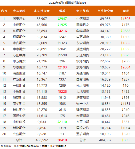 黑色持仓龙虎榜:热卷跌1.55% 中信增持超9千手螺纹多单