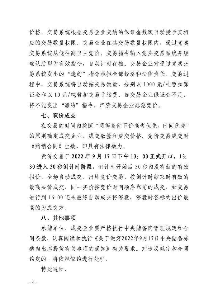 华储网:于9月17日进行中央储备冻猪肉出库投放竞价交易 数量1.5万吨 华储网 09月14日 华储网发布关于2022年9月17日中央储备冻猪肉出库投放竞价交易有关事项的通知:竞价交易1.5万吨。(文章来源:华储网) (责任编辑:admin)