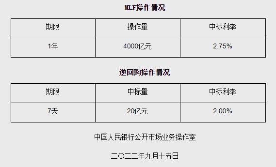 央行开展1年期MLF操作4000亿元 操作利率2.75% 央行网站 09月15日 为维护银行体系流动性合理充裕,2022年9月15日人民银行开展4000亿元中期借贷便利(MLF)操作和20亿元公开市场逆回购操作,充分满足了金融机构需求。具体情况如下:(文章来源:央行网站) (责任编辑:admin)