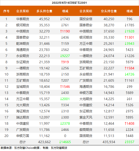 黑色持仓龙虎榜:螺纹跌1.63% 中信减持超2.1万手螺纹空单