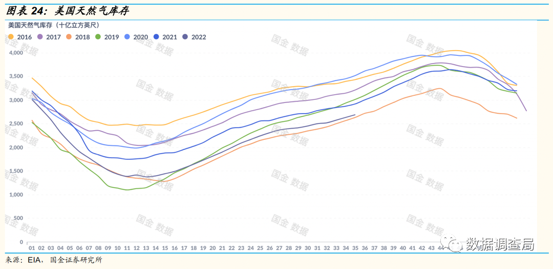 | 报告要点 通过回溯过去10年的全球天然气供求情况,我们认为美国天然气增产瓶颈对全球天然气供应的威胁丝毫不弱于俄罗斯对欧洲的供应下降,2023或出现比2022更加严峻的供求局面。 2012年至今,美国依靠页岩革命带来的天然气产量爆发式增长,其产量增量占全球天然气供应增量的40%,同期俄罗斯仅有14%,虽然伊朗产量增量占比与俄罗斯持平,但伊朗天然气主要供国内使用,另一天然气生产大国澳大利亚2023年也存在一定短缺风险,因此美国天然气产量成全球供应边际增量主要影响因素。 通过对美国州际管道投产最新状态的梳理以及美国能源署(EIA)的STEO对美国天然气产量预测数据变化,美国天然气供需偏紧在2023年难以缓解,除非主要天然气消费国普遍出现衰退,否则供不应求将更加恶化。 根据我们的测算,美国2023年产量增长或仅有0-2%,是过去6年(剔除出现疫情的2020年)以来的最小增幅,这主要由于美国州际管道项目受疫情反复、建设进度不及预期等负面影响,多个预计2022-2023年投产项目申请延期,这意味着2022年H2-2023年全年美国重点产区或没有新州际管道投产,管道运输能力或持续约束美国天然气产量增长,叠加开采活跃强度增长有限及资源品位的持续下滑等因素全球天然气2023年或持续供需偏紧,而这一趋势持续印证我们此前所指出的能源结构转型过程中天然气作为重点过度能源持续面临“青黄不接”的局面。 州际管道项目或持续制约美国天然气产量:我们梳理了美国重点产区州际管道的最新状态,受制于疫情反复、建设进度不及预期等负面因素影响,原本预计2022-2023年投产管道项目Mountain Valley Pipeline宣布延期,投产时间延期至2023-2024年,该项目天然气运输能力约为20亿立方英尺/天,约为当前美国天然气产量的2%。由于美国天然气生产主要集中于核心产区,主要依赖州际管道运输至各州使用,州际管道的投产延期或持续制约美国天然气产量增长,与此同时,考虑到美国天然气开采活跃强度增长有限及天然气资源品位持续下滑等因素,美国天然气2023年产量增长形势严峻。 美国能源署下调2023年天然气产量预测:通过对EIA的STEO数据进行梳理,最新STEO对2023年美国天然气产量数据较上半年预测下调,最新数据预测美国2023年天然气平均产量约为1092亿立方英尺/天,相较于2022年8月美国天然气产量增长约为2.7%,但这一数据相较于5月STEO2023年天然气产量预测值下调了近1.25%,EIA对美国天然气产量预测值的下调或进一步说明了2023年美国天然气产量边际增加会较为有限。 欧洲对LNG或长期需求旺盛,美国天然气供需或持续偏紧:当前美国天然气库存持续维持历史较低水平,受地缘政治影响,欧洲或持续维持增加LNG进口以减少对俄罗斯管道气依赖,而美国为欧洲LNG进口主要供应国。但我们要说明的是,当前美国Freeport港口由于爆炸影响暂未恢复运营,预计2022年11月至2023年3月逐步恢复,伴随美国Freeport港口运营恢复,美国天然气出口需求持续旺盛,但美国作为全球第一大天然气边际供应商的产量增长极为有限,并不能排除2023全球天然气荒的可能性。 风险提示 (1)疫情反复扰乱天然气需求的风险;(2)美联储加息抑制终端需求的风险;(3)卫星定位和油轮跟踪数据误差对结果产生影响的风险;(4)其他第三方数据来源出现误差对结果产生影响的风险;(5)其他不可抗力。 美国天然气产量增长或持续低于预期,2023或全球气荒 2012年至今,美国依靠页岩革命带来的天然气产量爆发式增长,其产量增量占全球天然气供应增量的40%,同期俄罗斯仅有14%,伊朗虽然也提供了14%的增长,但伊朗天然气主要为国内自用,并非用于出口,且伊朗并未建设用于LNG出口的液化厂,天然气出口能力不足。与此同时,澳大利亚2023年存在缺气风险,2022年8月1日澳大利亚竞争和消费委员会(ACCC)报告声称“澳大利亚2023年东海岸市场预计短缺56兆焦耳天然气”,在此情景下,澳大利亚北部资源部官员宣布政府将与东海岸LNG出口商用于保障国内天然气供应协定(即在澳大利亚国内天然气存在短缺情景下减少出口)延期至2030年(此前合约预计2023年1月到期),澳大利亚2023年天然气对全球实际供应量增量活较为有限。 因此,美国天然气供应了全球天然气供应的边际增量,在俄罗斯天然气供应收到制约的情景下,美国天然气产量的变化会成为全球天然气供需格局的重点边际影响因素。 ![]() ![]() 我们梳理了美国重点产区州际管道的最新状态,受制于疫情反复、建设进度不及预期等负面因素影响,原本预计2022-2023年投产管道项目Mountain Valley Pipeline宣布延期,投产时间延期至2023年底至2024年,该项目天然气运输能力约为20亿立方英尺/天,约为当前美国天然气产量的2%。由于美国天然气生产主要集中于核心产区,主要依赖州际管道运输至各州使用,州际管道的投产延期或持续制约美国天然气产量增长。 ![]() ![]() ![]() Louisiana Connector- Port Arthur Pipeline在近期也申请了投产时间的延迟,最后投产时间延迟至2028年,实际投产时间预计在2024-2026年期间,与此同时,该管道主要运用于连接天然气产区与LNG出口港口,即使投产也并未增加美国国内州际管道运输能力。 ![]() ![]() ![]() ![]() ![]() ![]() ![]() 与此同时,考虑到美国天然气开采活跃强度增长有限及天然气资源品位持续下滑等因素,美国天然气2023年产量增长或持续低于预期。 ![]() 通过对EIA的STEO数据进行梳理,9月STEO对2023年美