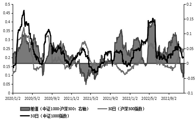 图为中证1000指数与沪深300指数历史波动率