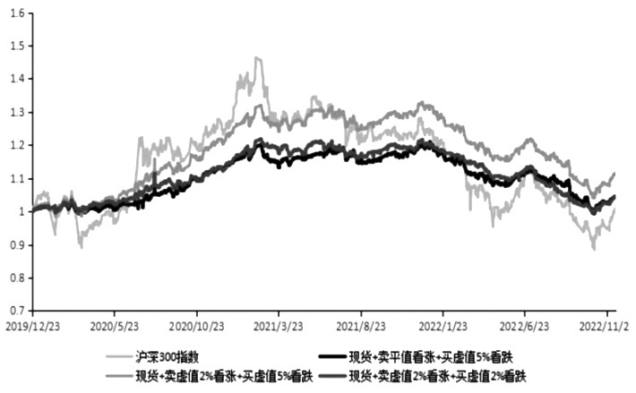 持仓PCR值与标的价格存在明显正相关性 2023年沪深300指数期权平值隐含波动率整体振荡区间在14%—40%,短期在地产利好、防控优化等相关政策驱动下隐波下行空间不大,但亦难有大的上行机会,其在明年一季度和三季度或有至少两个30%以上的局部高点。对于中证1000指数期权,其振荡区间预计在16%—50%。期权策略上,一方面可关注明年一季度及三季度隐波触及30%以上的做空波动率机会,另一方面,备兑及领口类策略有望继续跑赢标的指数,可关注其指数增强机会。