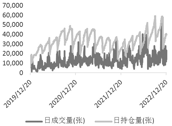 图为沪银期价与美元指数走势(截至2022年12月23日) B白银期权上市未来发展可观 白银期权合约正式挂牌交易时间为2022年12月26日。 白银作为导电性和导热性最好的金属,应用领域较为广泛,也拥有较长的历史。白银有三大需求,分别是工业、投资和银饰银器。在工业需求下,近年来随着新能源的全面布局,新能源成为当下白银新的增量需求。由于白银价格波动巨大,线性工具风险管控难度较大,而非线性工具白银期权上市,能够为白银价格带来非线性的精准化风险管理,并能够完善白银价格定价体系,有利于白银市场发展。 据统计,2022年年初至12月23日期间,白银期货日均成交量58.48万手,累计成交量1.38亿手,日均成交金额416亿元,累计成交金额9.86万亿元。同期,黄金期货日均成交量10.03万手,累计成交量0.23亿手,日均成交金额395亿元,累计成交金额9.35万亿元。此外,以场内已上市的黄金期权来看,黄金期权自2019年12月20日上市以来,成交量及持仓量稳步抬升,从2022年年初至12月23日,黄金期权日均成交量1.7万手,日均持仓量3.68万手。两者成交金额差异很小,而白银期货的成交活跃度要高于黄金期货,基于黄金期权呈现稳健发展的态势。综上分析,白银期权市场未来发展可观。 C白银期权可为投资者提供丰富的风险管理策略