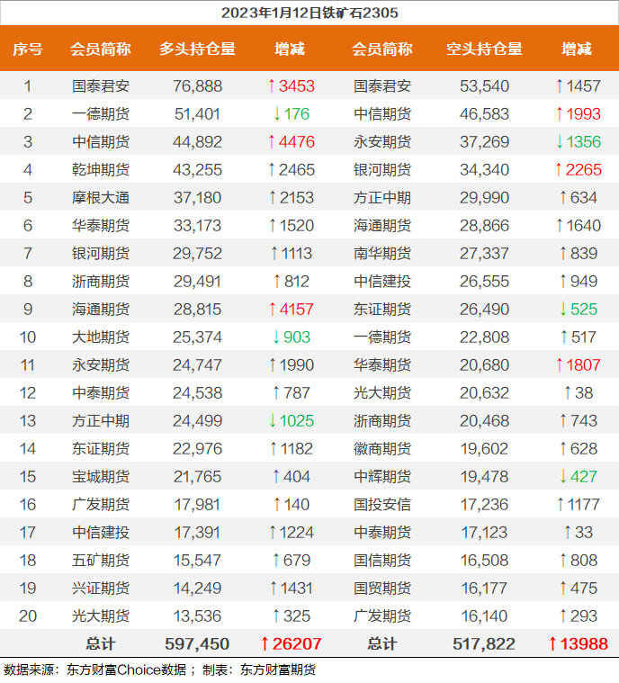 黑色持仓龙虎榜:铁矿石涨1.36% 国泰君安期货减持超2万手螺纹多单